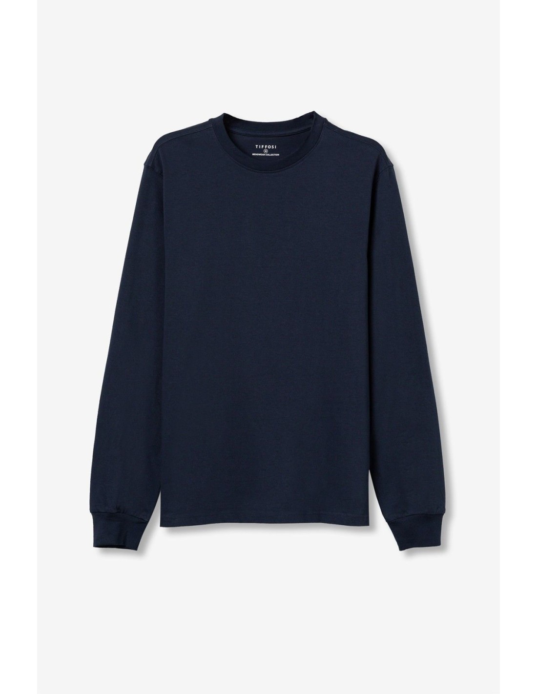 Llevadera y básica camiseta de manga larga, con puños rib y cuello redondo, Con aberturas laterales en el bajo, de la colección BECKER de la nueva colección de la firma TIFFOSI.