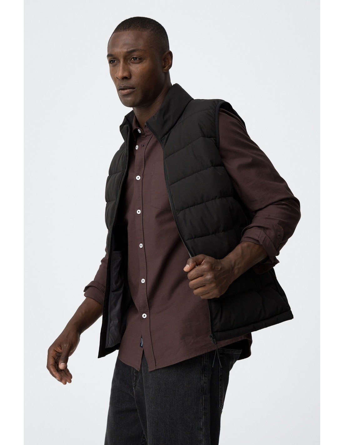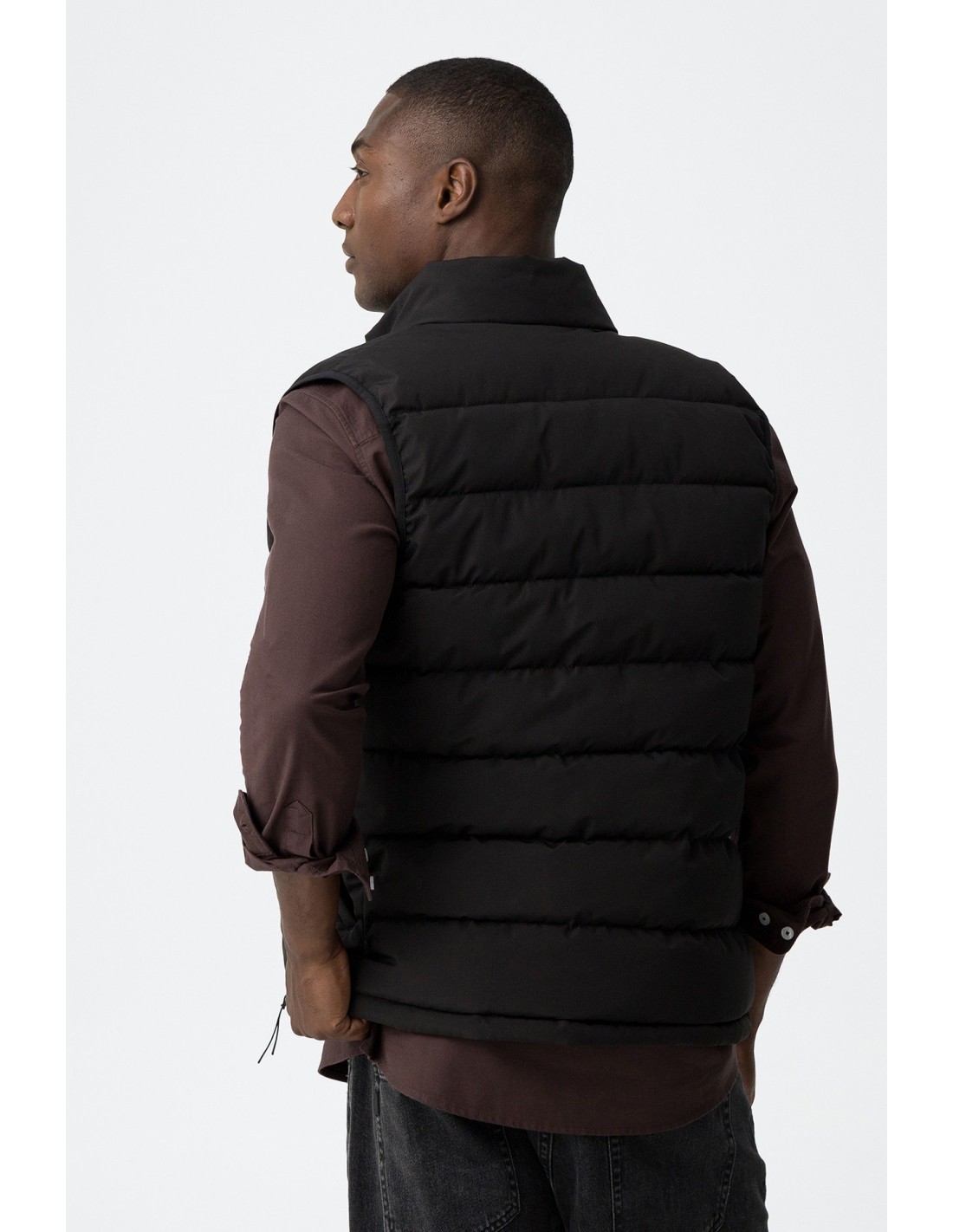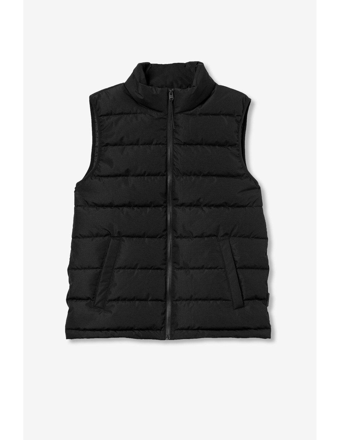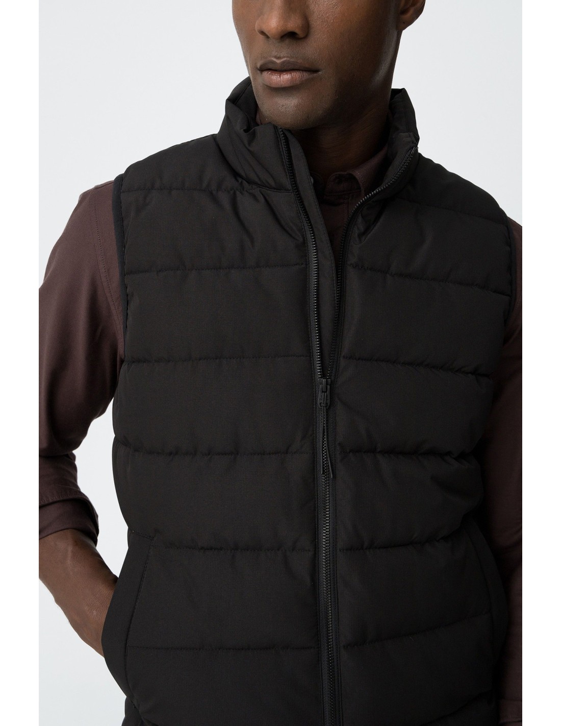 Ideal y ligero chaleco con cuello subido y sin mangas. Con bolsillos laterales y otro interior. Su cierren frontal con cierre de cremallera.
