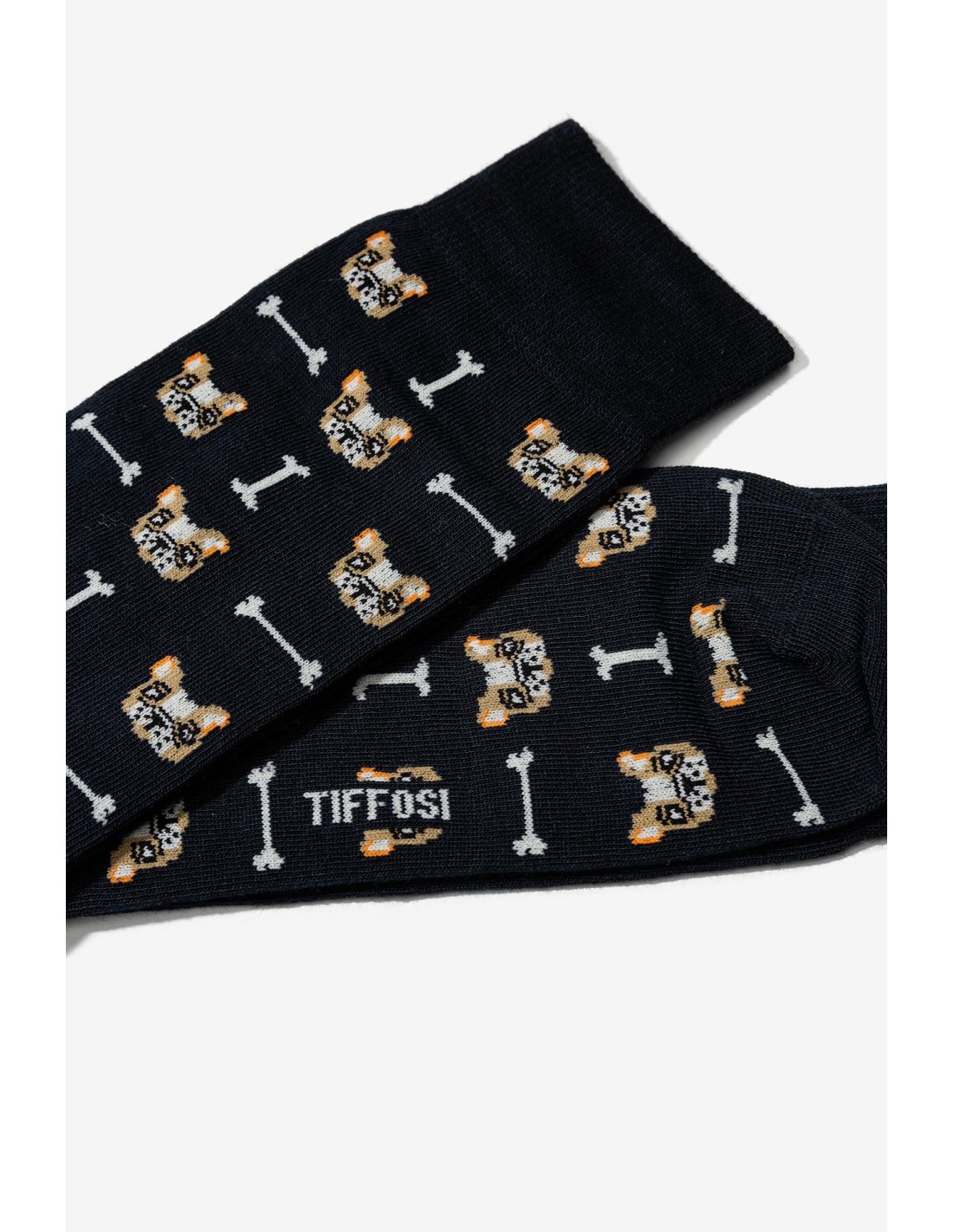 Originales calcetines en azul marino con gracioso estampado de caritas de perro y huesos de la colección QUINLAN de la nueva temporada de TIFFOSI.