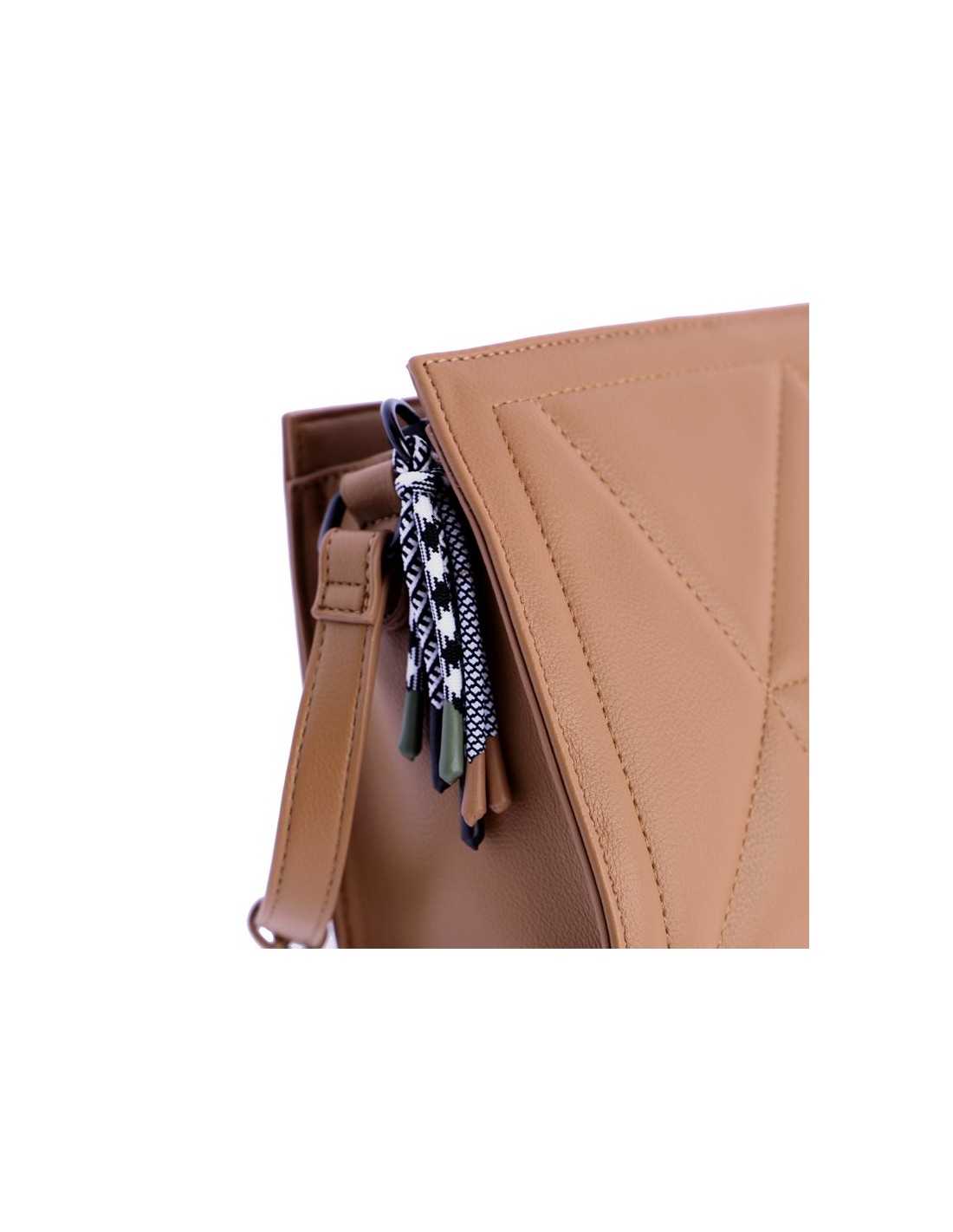 Ideal bandolera camel, diseñada en piel sintética acolchada gracias a los pespuntes que tiene, de la colección VERONA de la firma DON ALGODÓN.