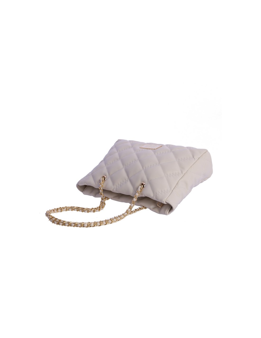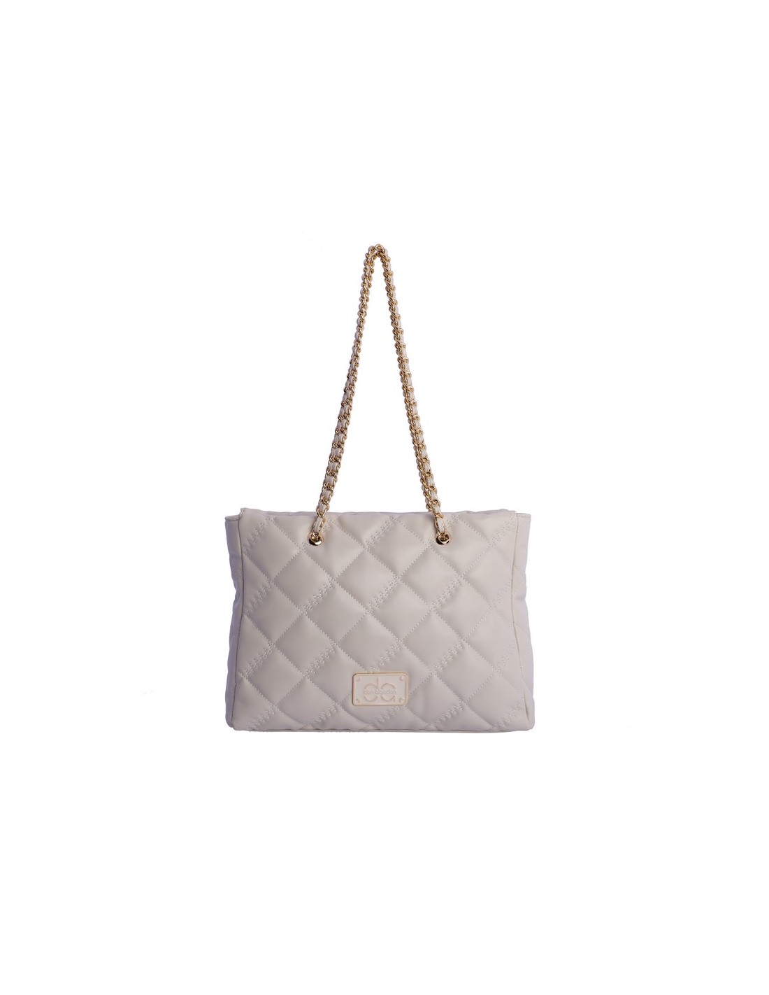 Elegante bolso en color marfil, diseñado en piel sintética acolchada gracias a los pespuntes que tiene, de la colección LIVORNO de la firma DON ALGODÓN.