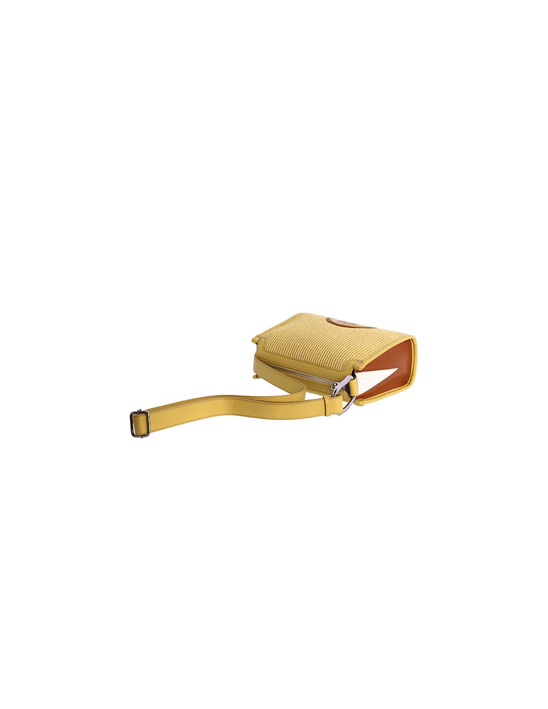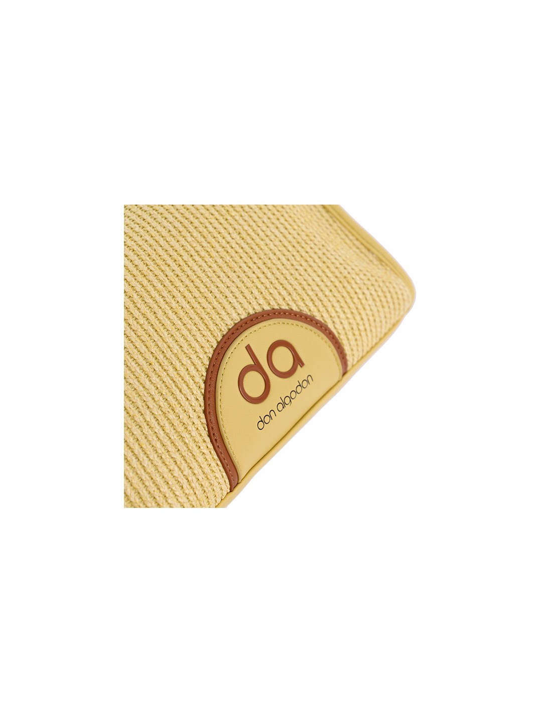 Preciosa bandolera en formato rectangular diseñada en rafia color amarillo con detalles el pien sintética al tono , marrón y beige de la colección ARIANA de la firma DON ALGODÓN.