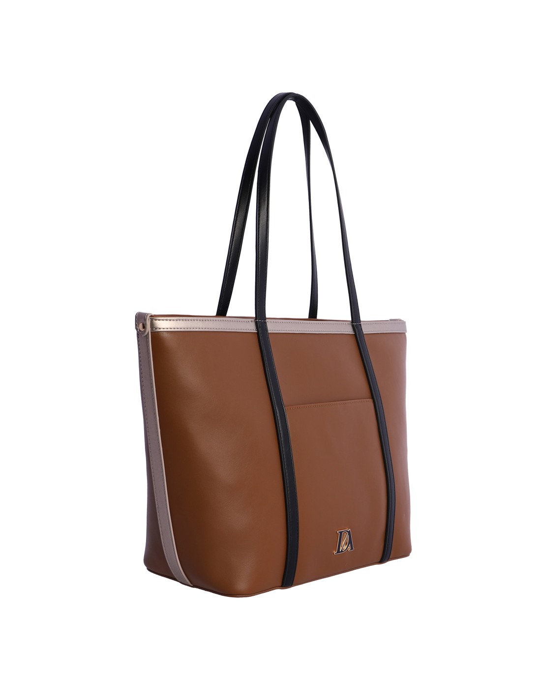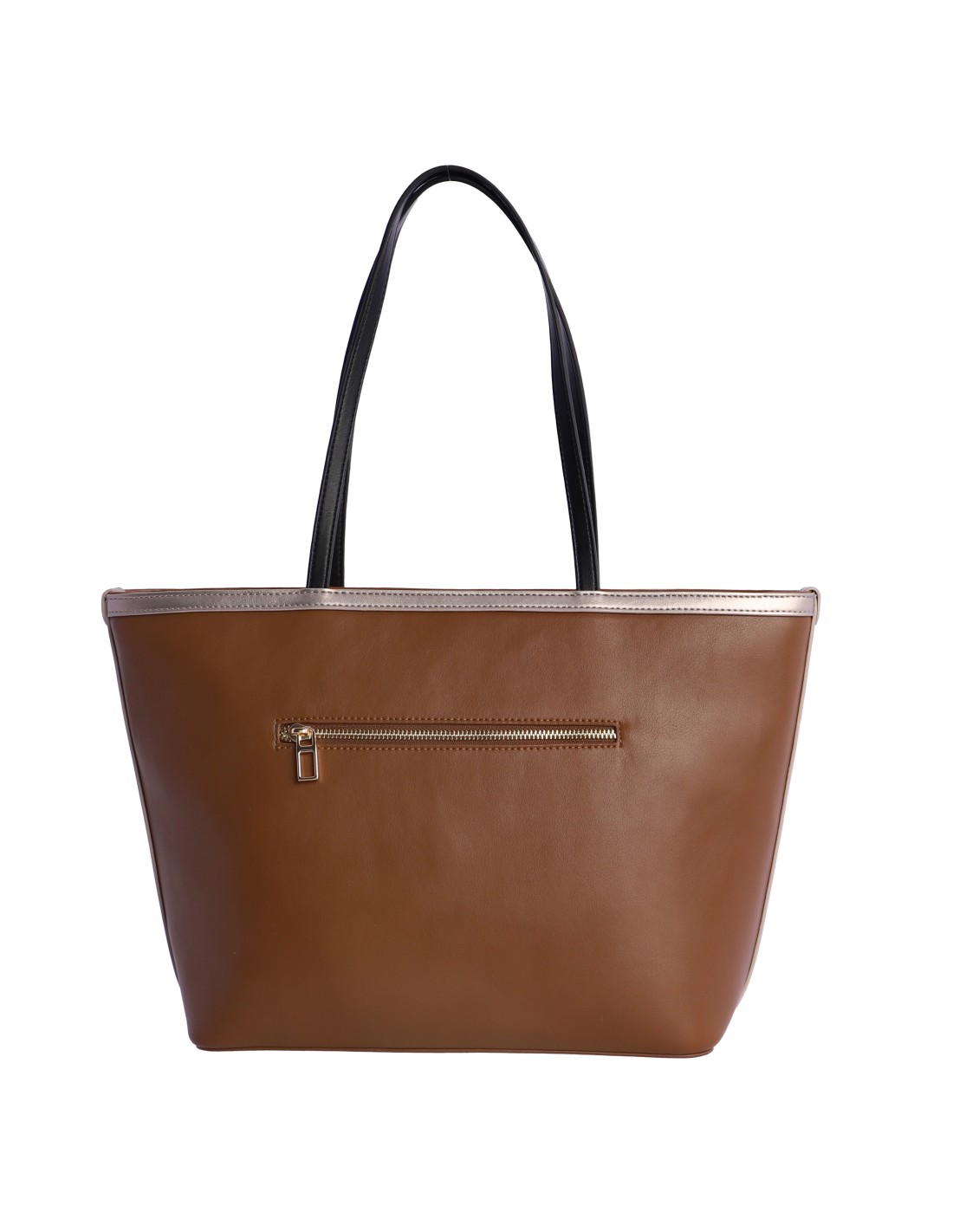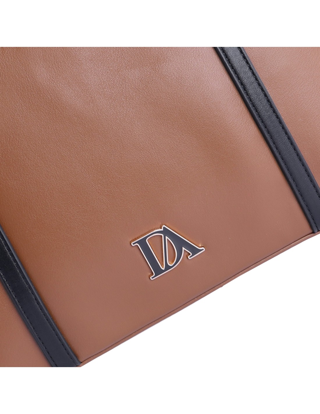 Original bolso en formato shopper marrón combinado con detalles en blanco y negro en piel sintética, de la nueva colección de la firma DON ALGODÓN.