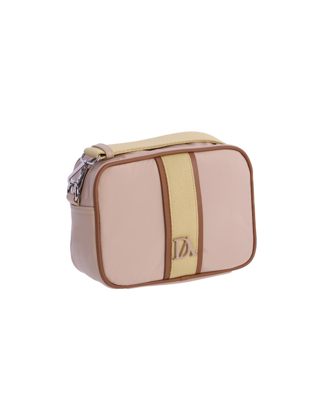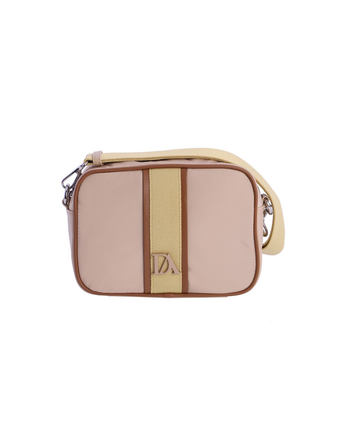 Ideal bandolera en formato cuadrado en color beige con detalles en amarillo y marrón, de la nueva colección de la firma DON ALGODÓN.