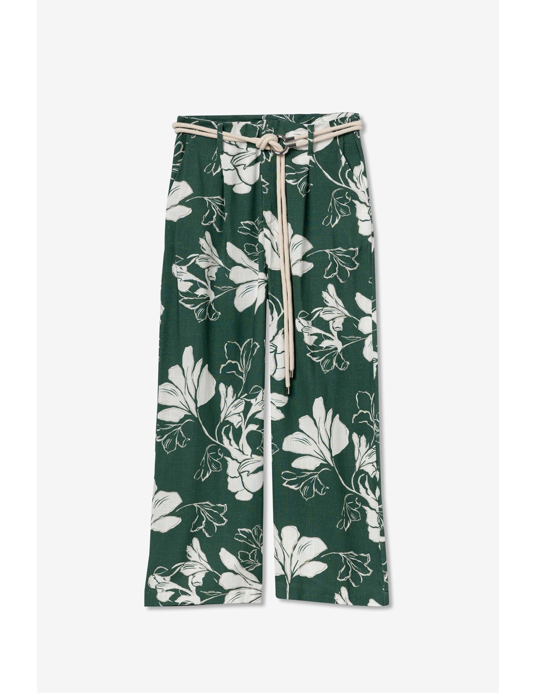 Bonitos pantalones verdes con un bonito estampado floral en blanco de la colección JOANA de la firma TIFFOSI.