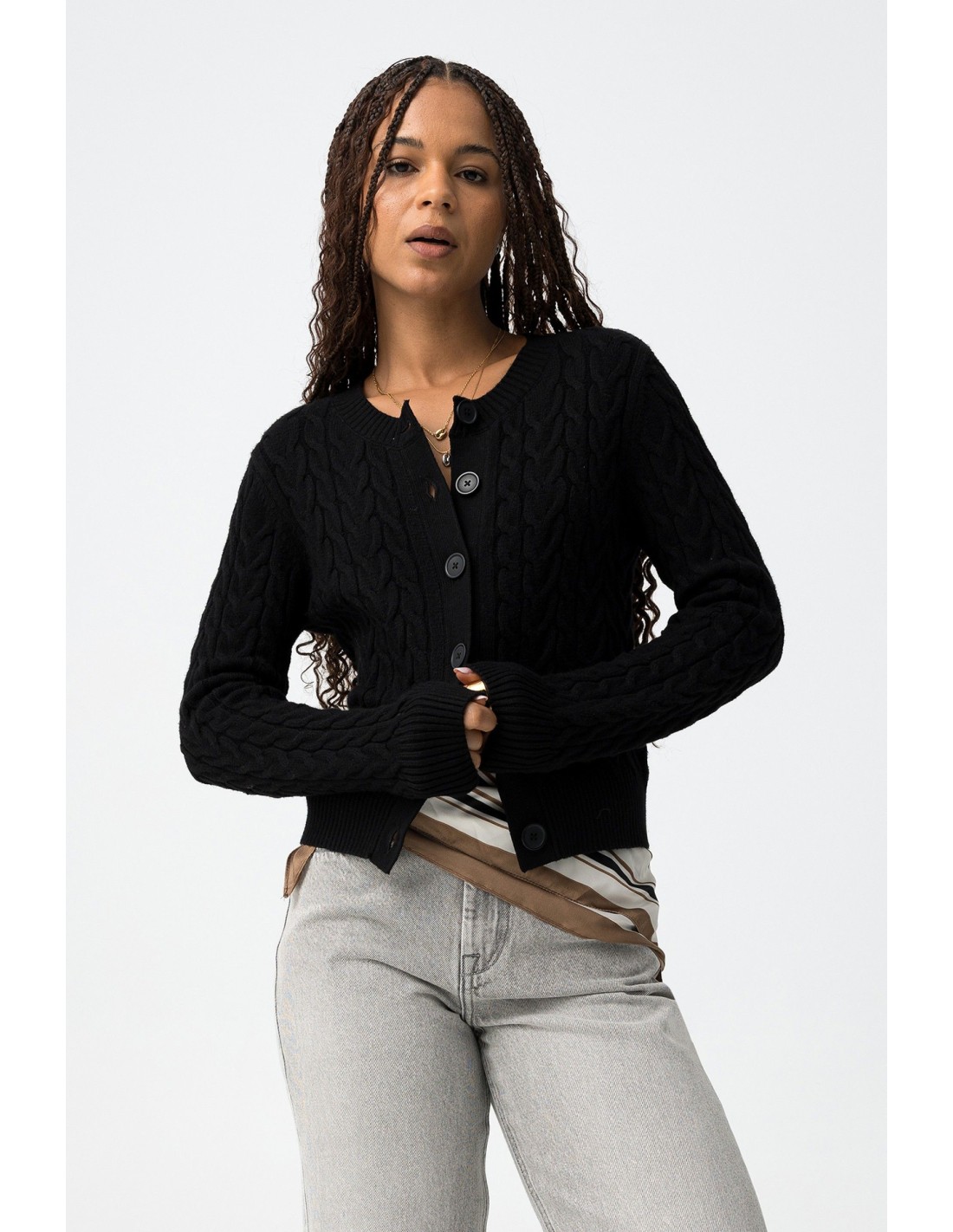 Bonita chaqueta slim fit diseñado en punto trenzado de la nueva colección de la firma TIFFOSI.