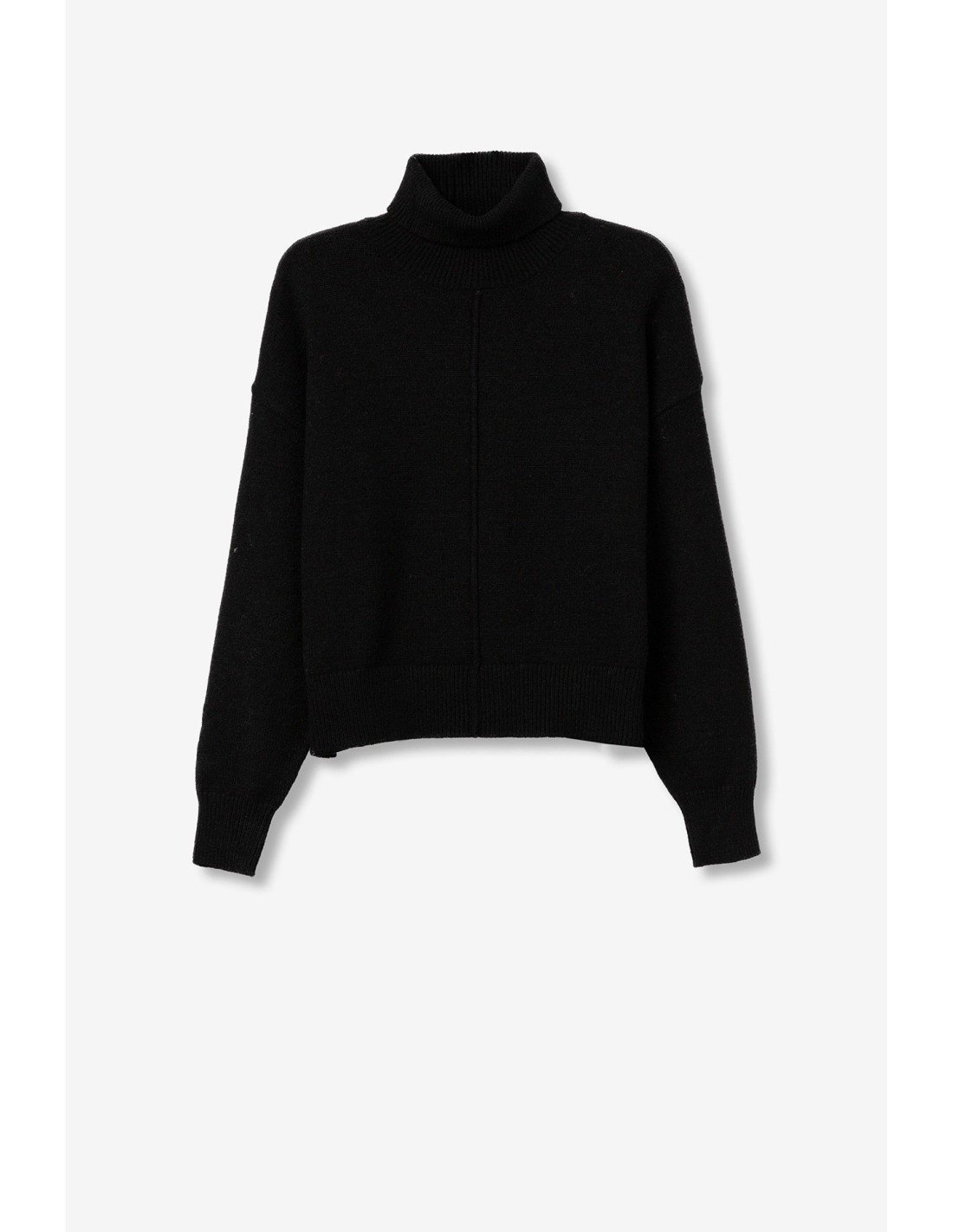 Disponible en dos colores. Con cuello alto, manga larga y detalle de acabados en canalé-