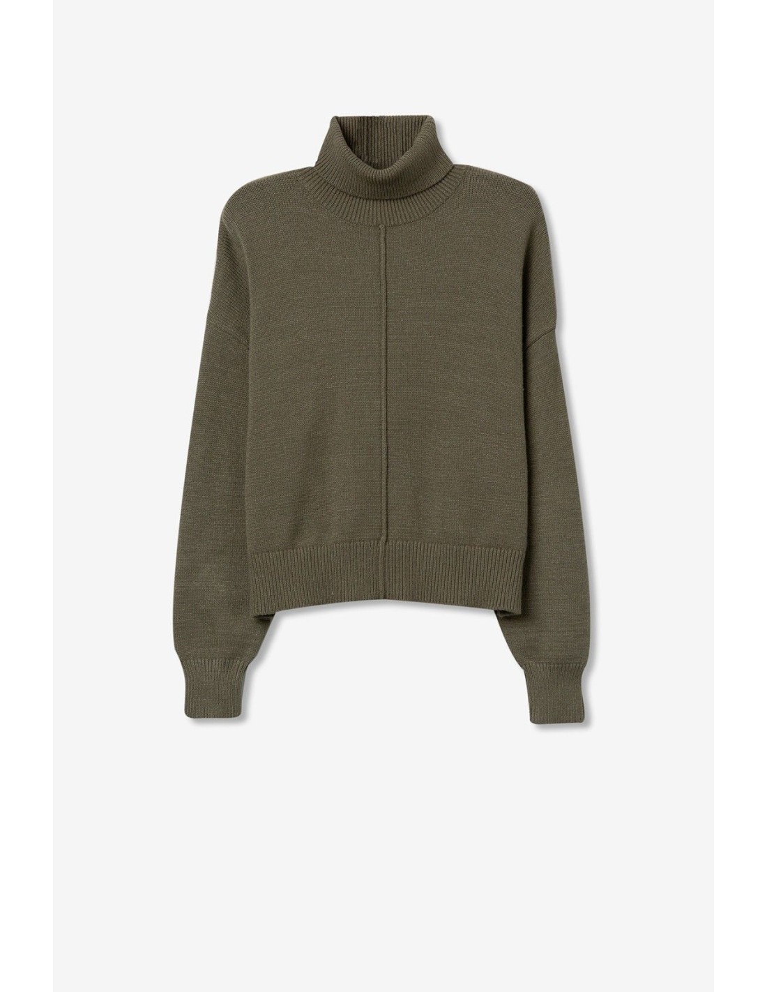 Disponible en dos colores. Con cuello alto, manga larga y detalle de acabados en canalé-