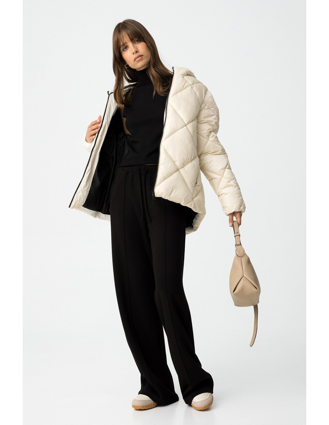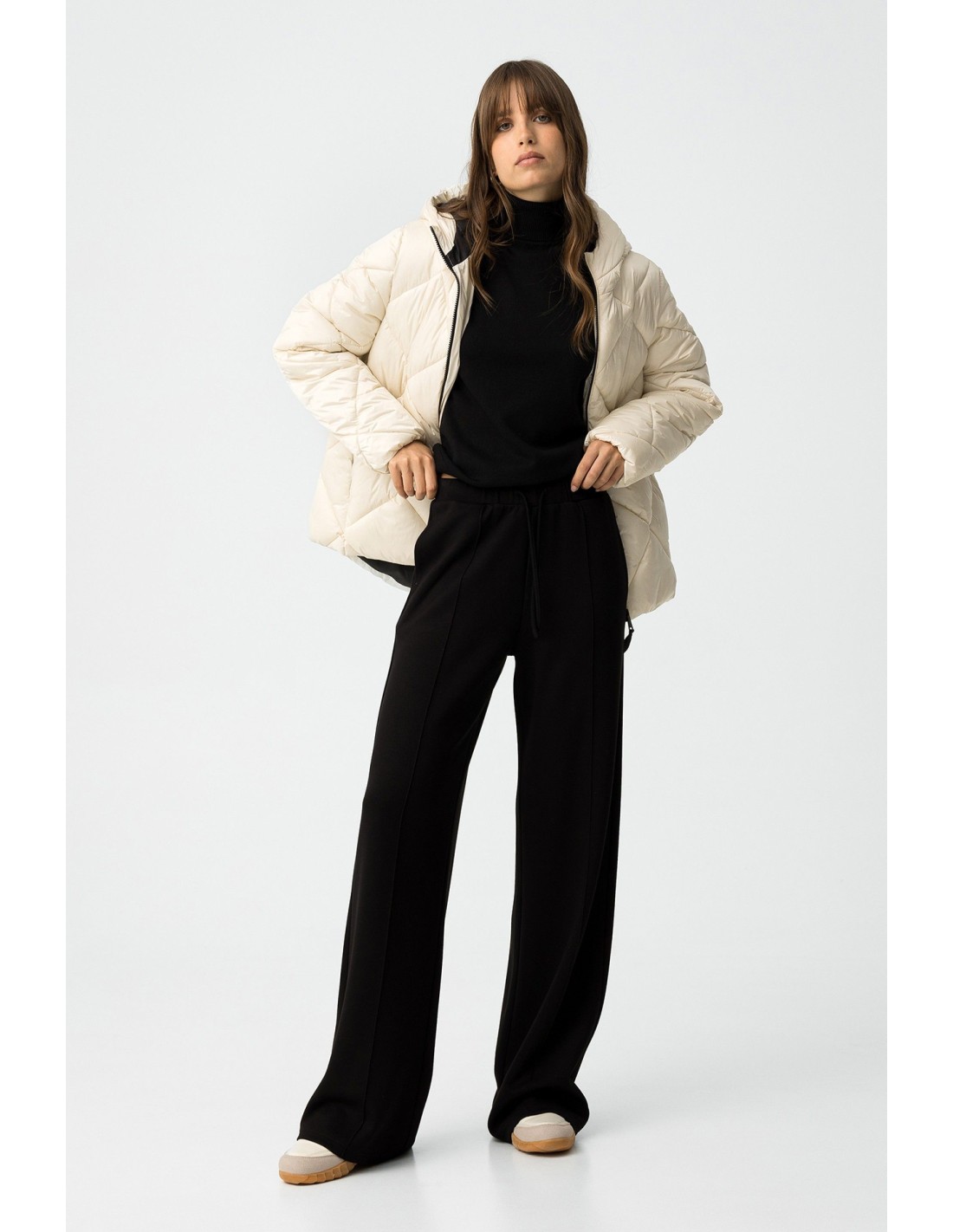 Cómodos pantalones de punto de pierna ancha, con dos bolsillos y costuras frontales. con cintura elástica y cordón acoplándose perfectamente a la cintura. De la colección VALENTINA DE TIFFOSI