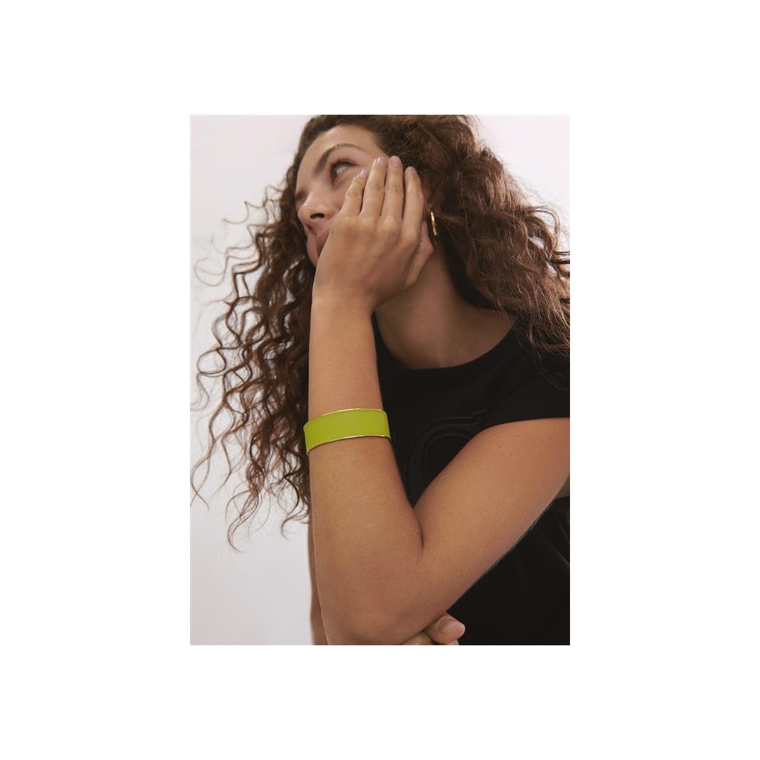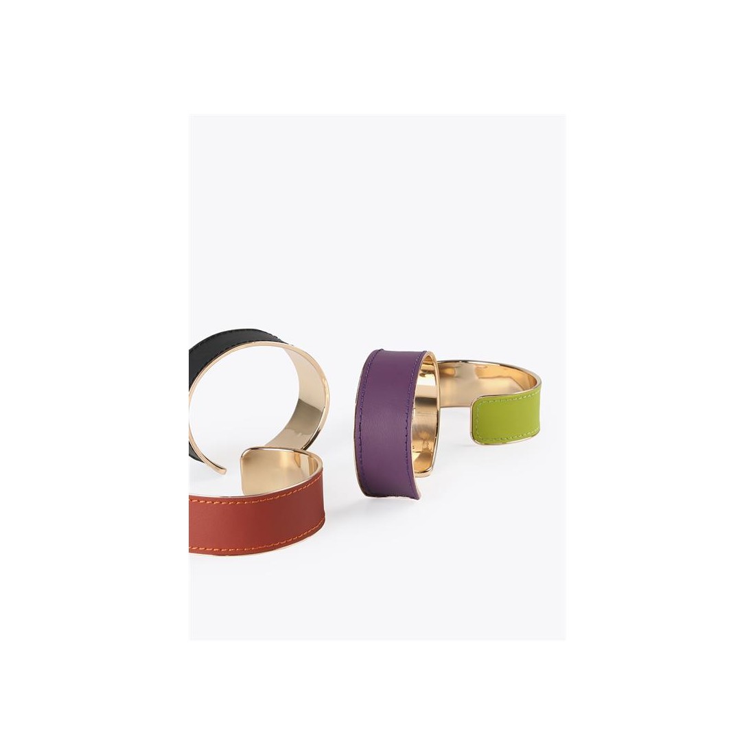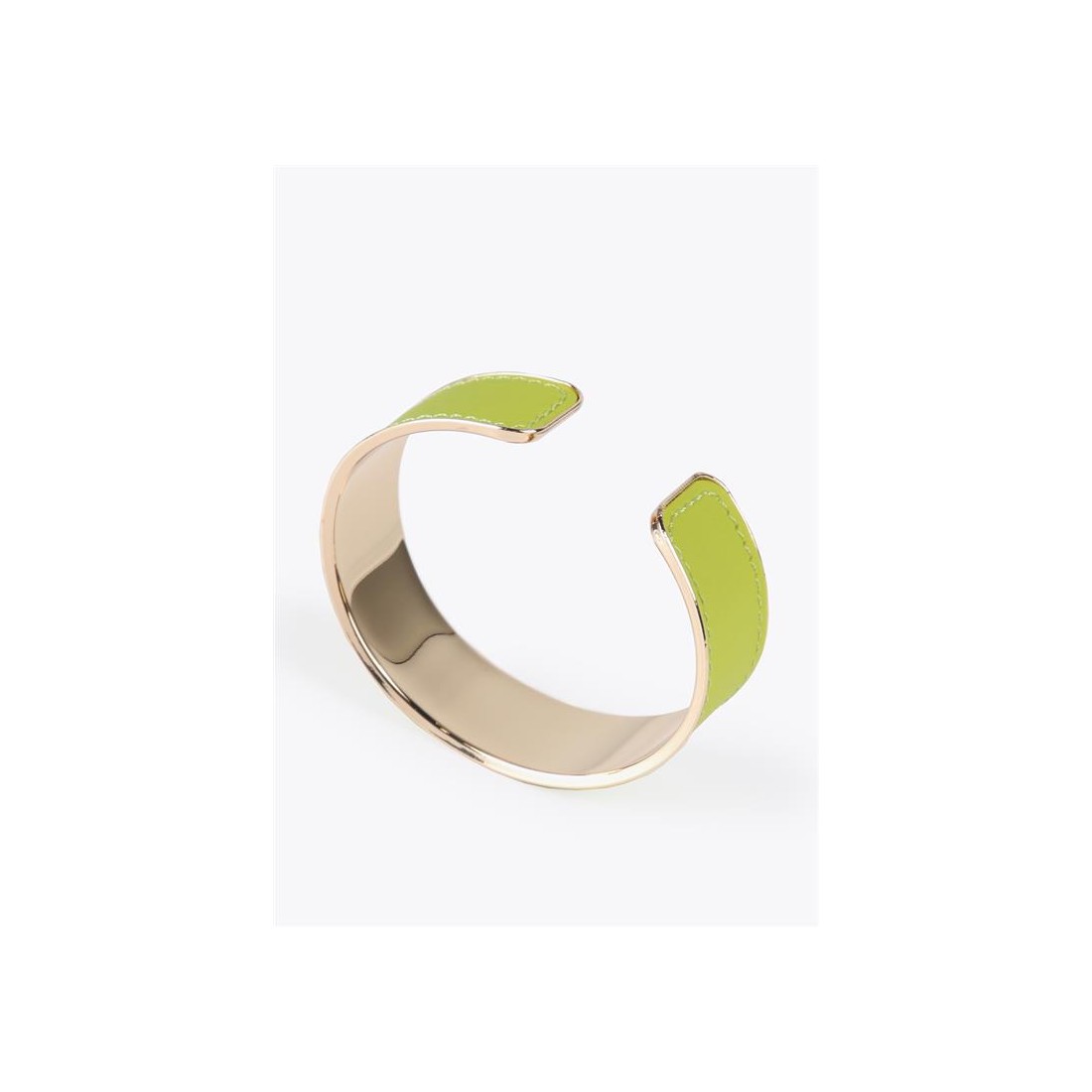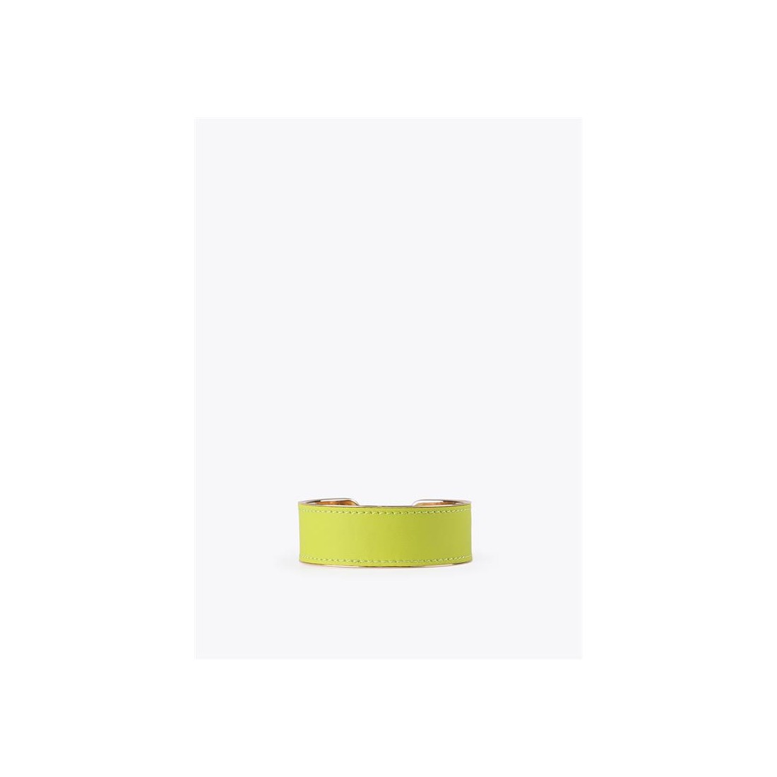 Diseñado en dorado y forrada en tejido efecto piel en color.