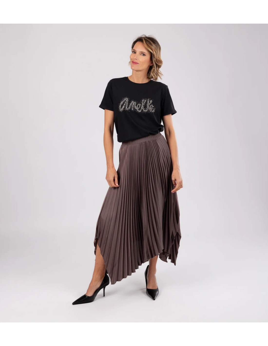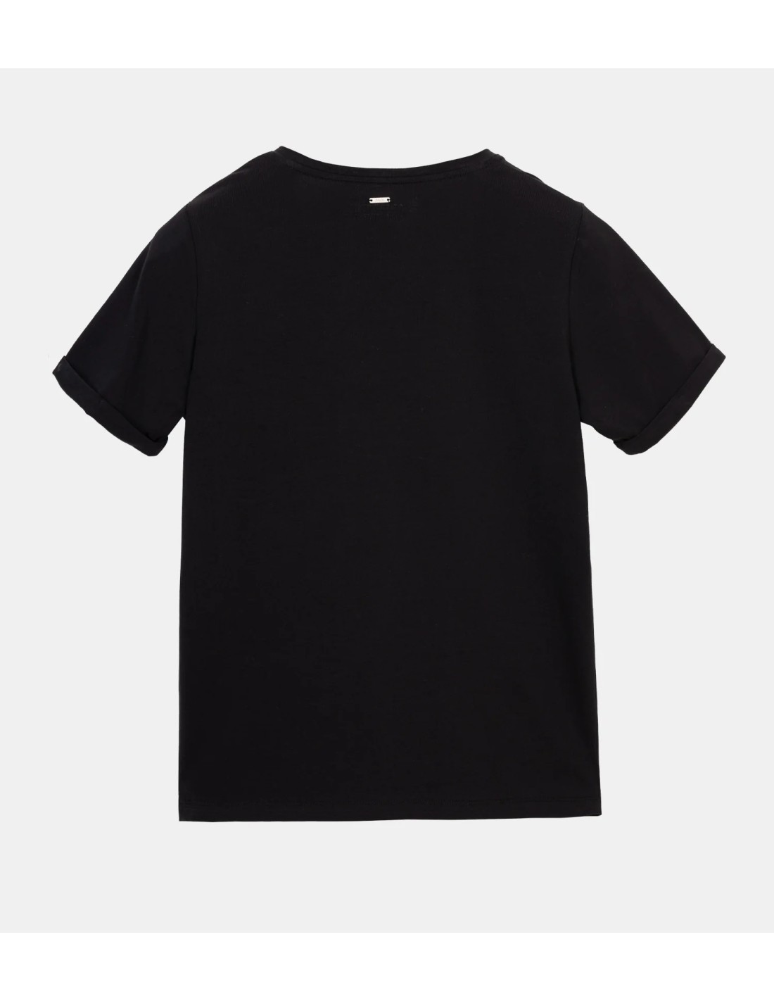 CAMISETA-NEGRA.LOGO-PLATA-CUELLO-RENDPNDO-MANGA-CORTA-ANEKKE
