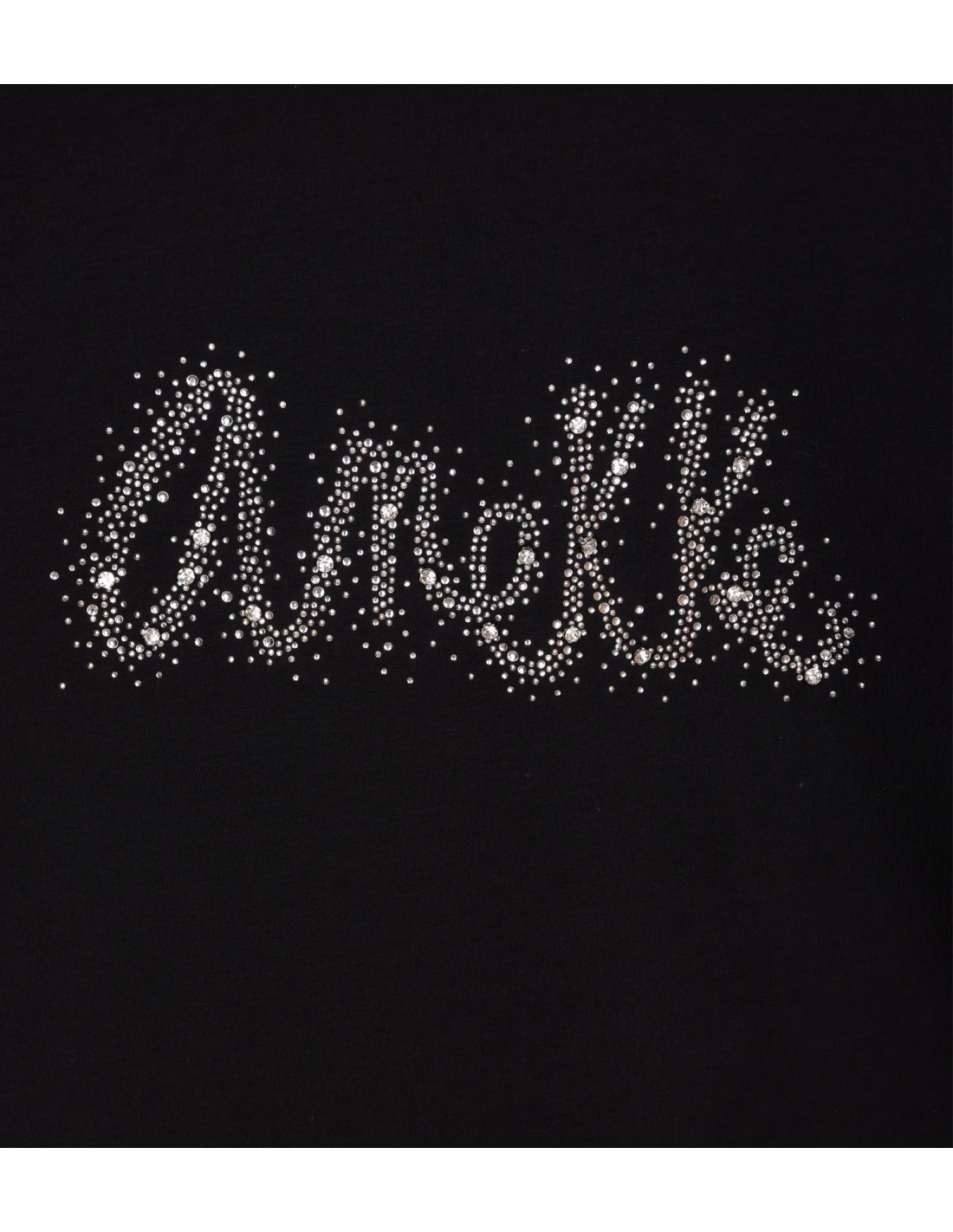 Diseñada en manga corta, con cuello redondo y lo más especial en el logo en la parte frontal con pequeños adornos plateados en difentes tamaños, haciéndola una prenda preciosa y muy llevadera en cualquier momento del día.