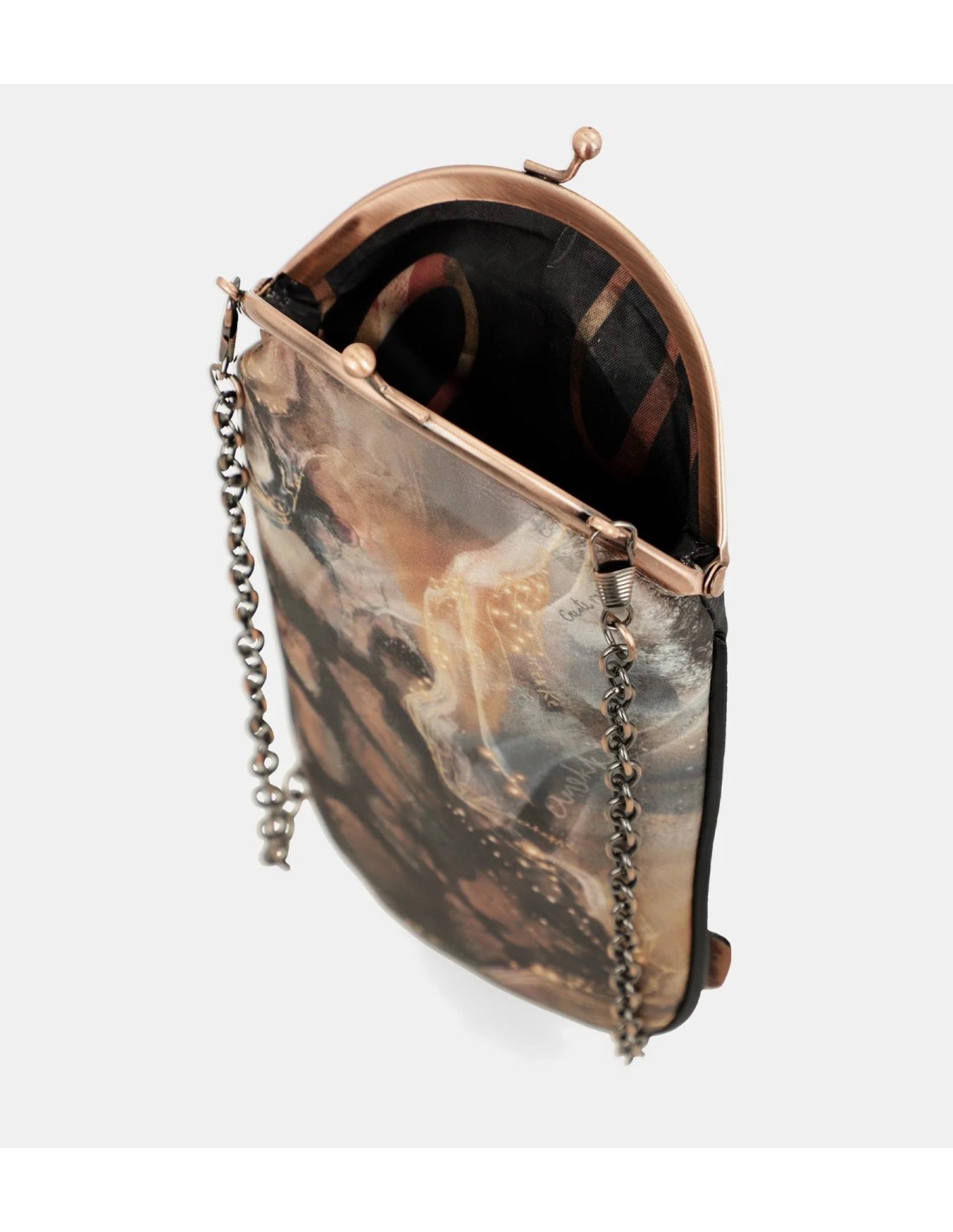 Con un diseño único, en el que cuenta con un asa de cadena y cierre de boquilla metalizado. De tamaño medio-pequeño que te permitirá usarlo , como mini bandolera, para guardar tus gafas o bien el móvil.