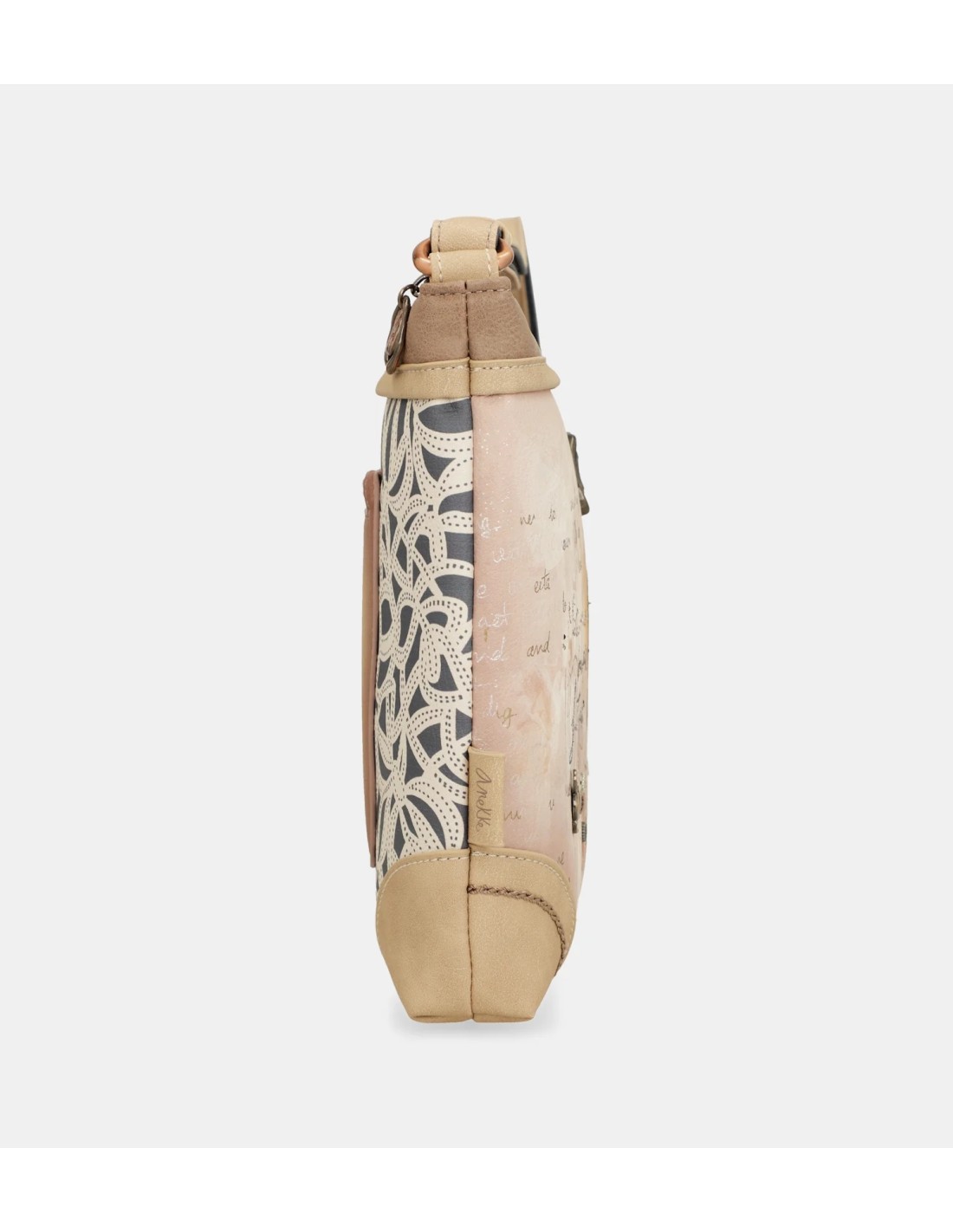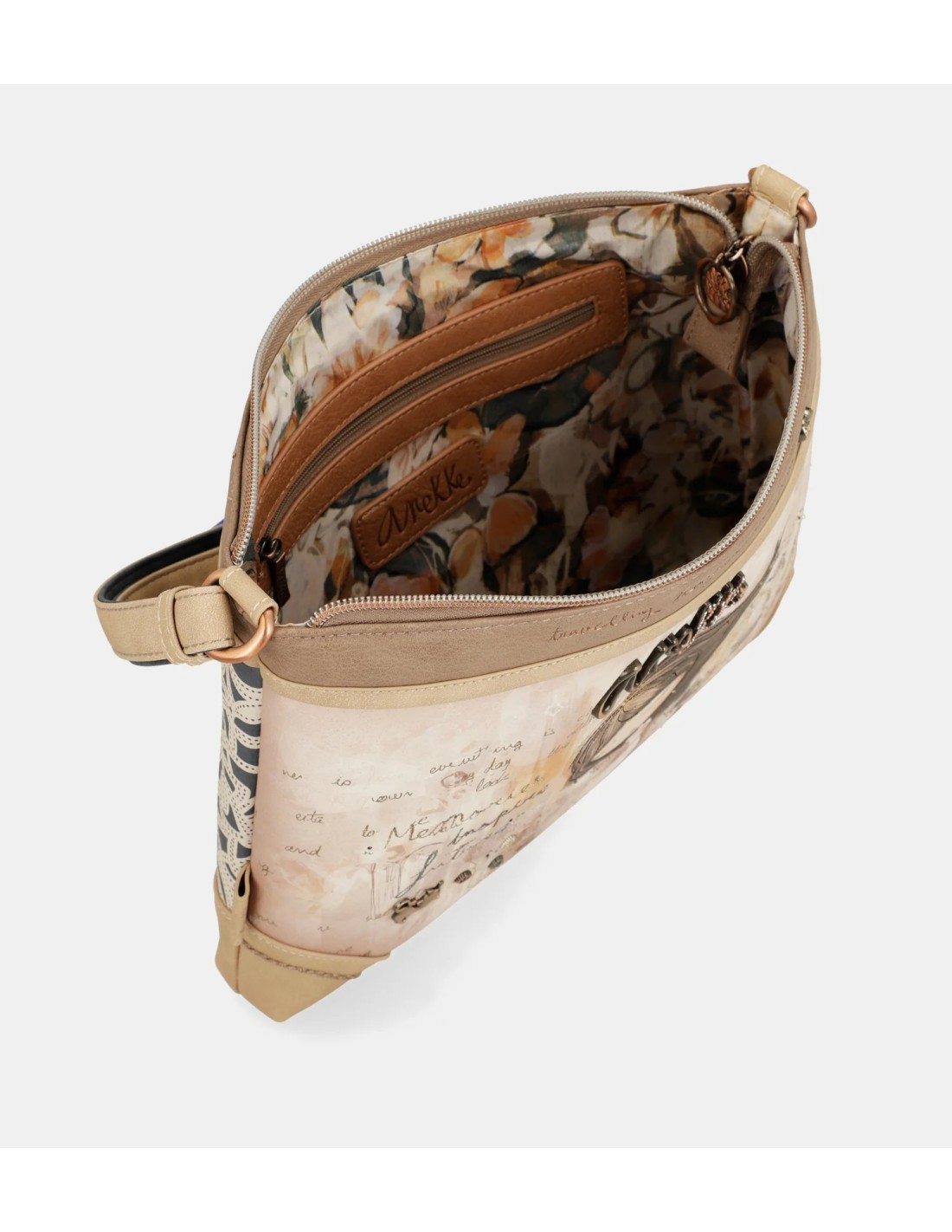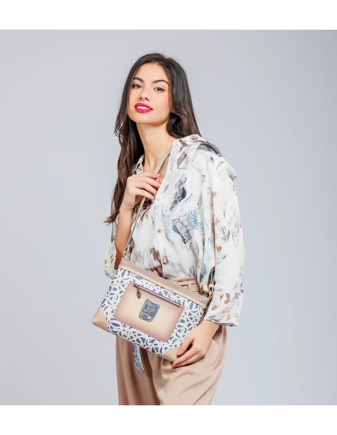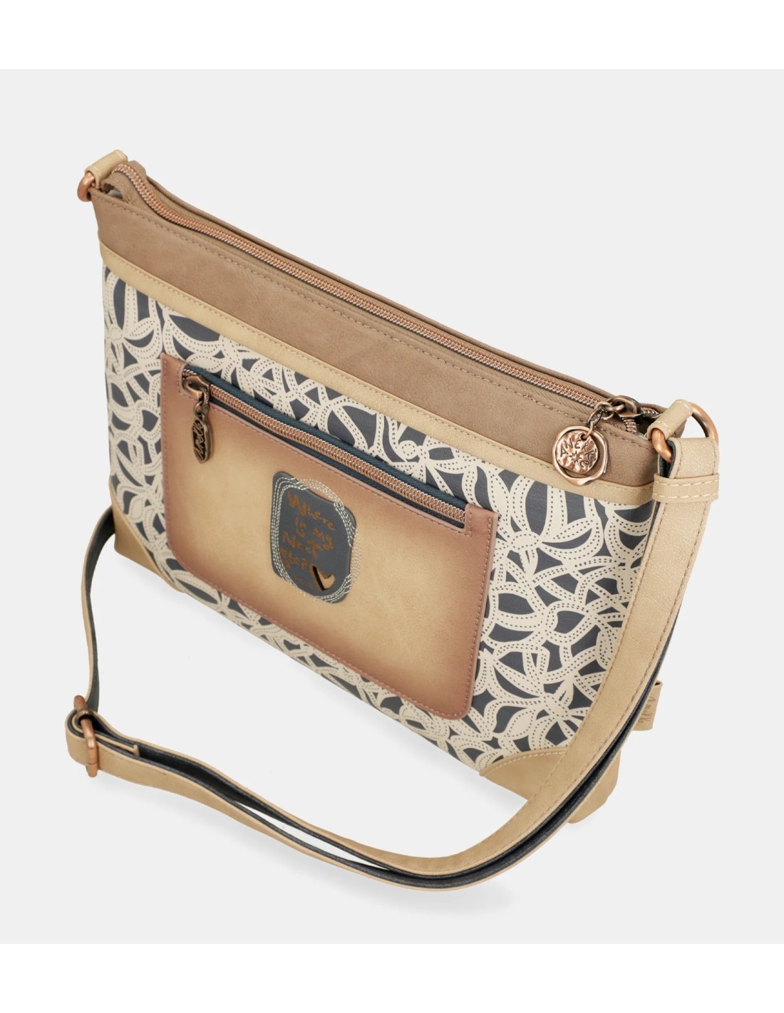 Su bolsillo principal, con cierre de cremallera y su interior, forrado en textil, con un compartimento con cierre de cremallera en la parte trasera. Con asa regulable para poner a modo de bandolera o dejado caer sobre el hombro.