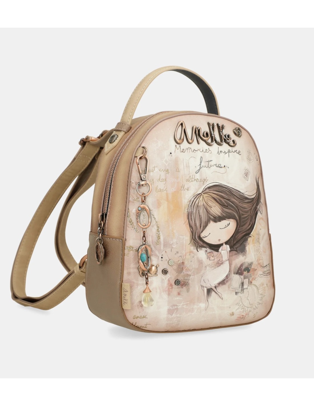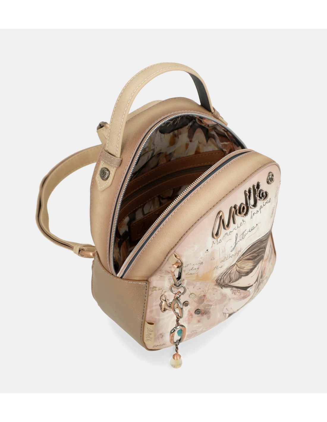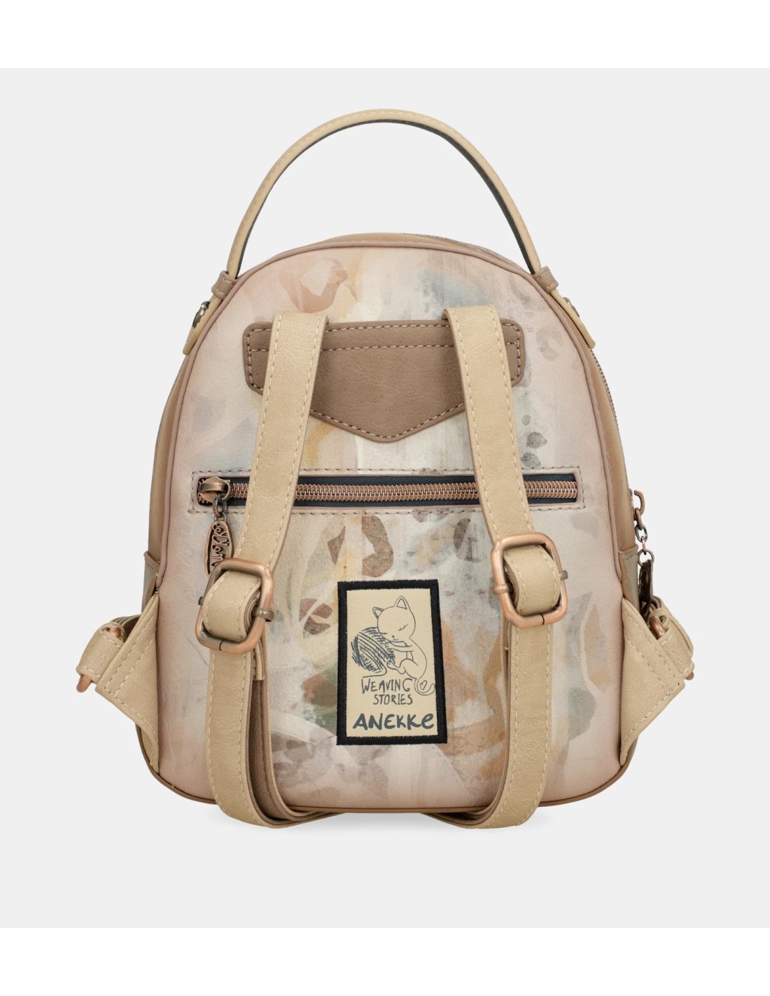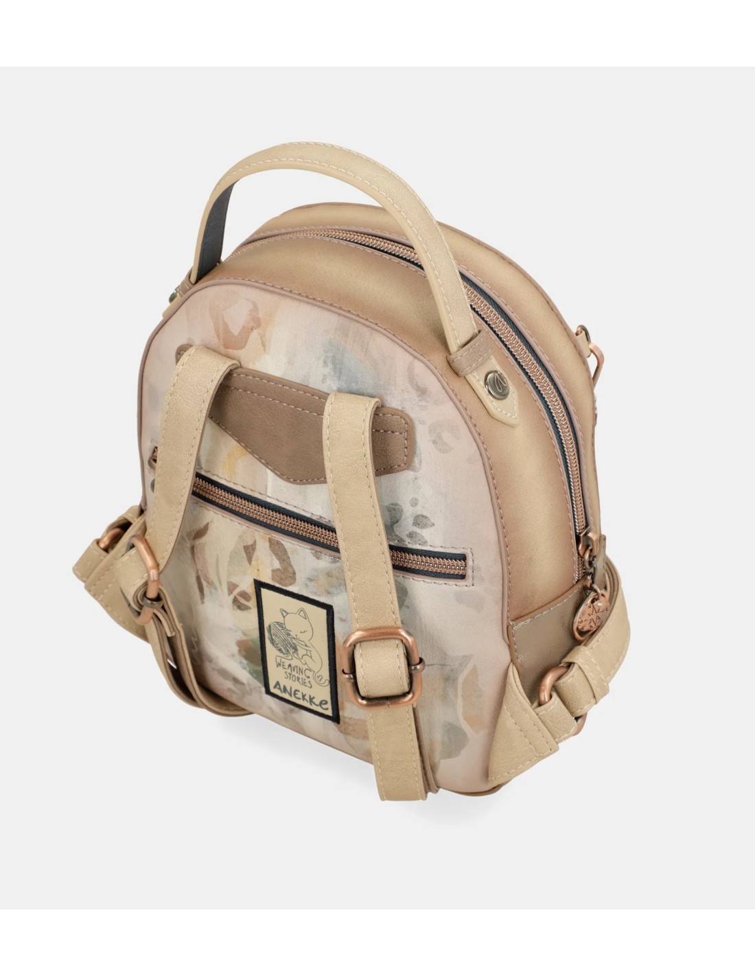 Diseñado con un tamaño medio-pequeño. Con un compartimento con cierre de cremallera en la parte trasera Su bolsillo principal con cierre de cremallera con un interior forrado en textil y con pequeños compartimentos. Tiene dos tipos de asas, dos regulables que es con la que podemos ponérnosla de mochila y una superior para llevar de mano.