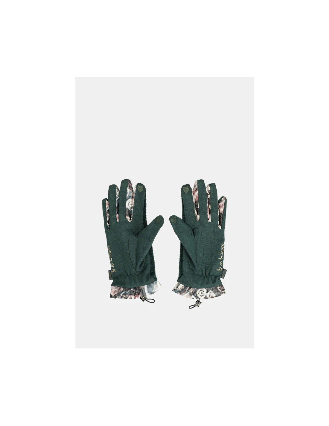 Ideales guantes muy calentitos gracias al tejido de pelito en que esta diseñada en la parte superior y la parte inferior lisa muy suave tipo antelina . En color verde y Y detalles de estampado propios de la colección REAL de ANEKKE.
