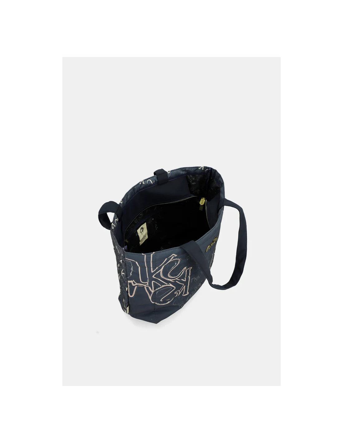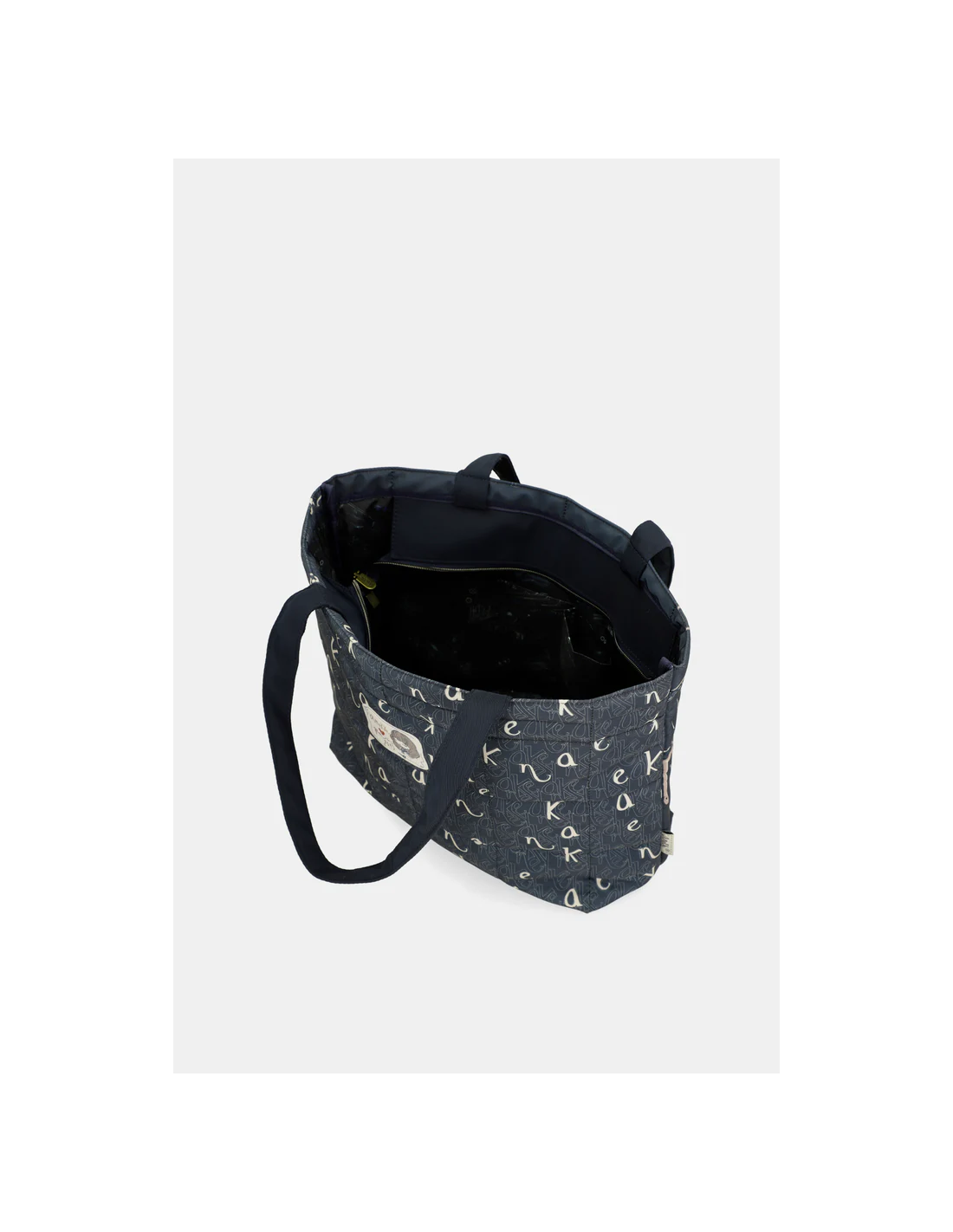 Un bolso grande  con dos asas de hombro y su bolsillo principal con cierre de cremallera. Su interior forrado en textil y con pequeños compartimentos en los laterales. un bolso amplio perfecto para fin de semana y llevar lo justo y necesario.