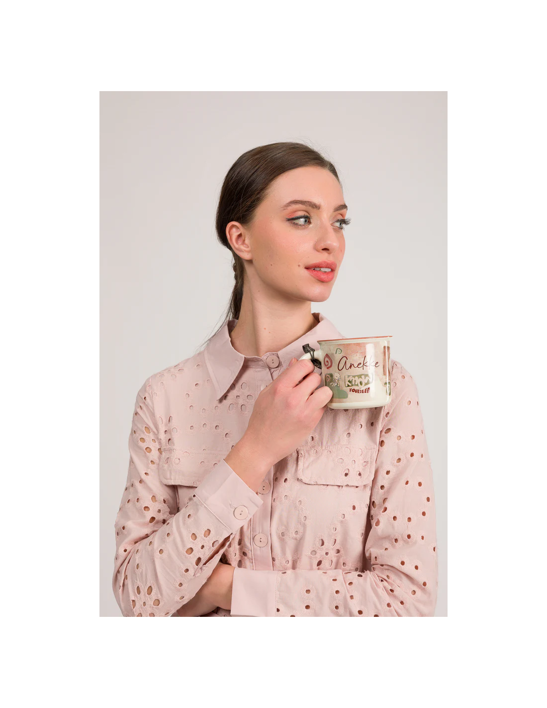 Preciosa taza de porcelana con dibujos, estampados y letras, propias de la colección MUSE ANEKKE