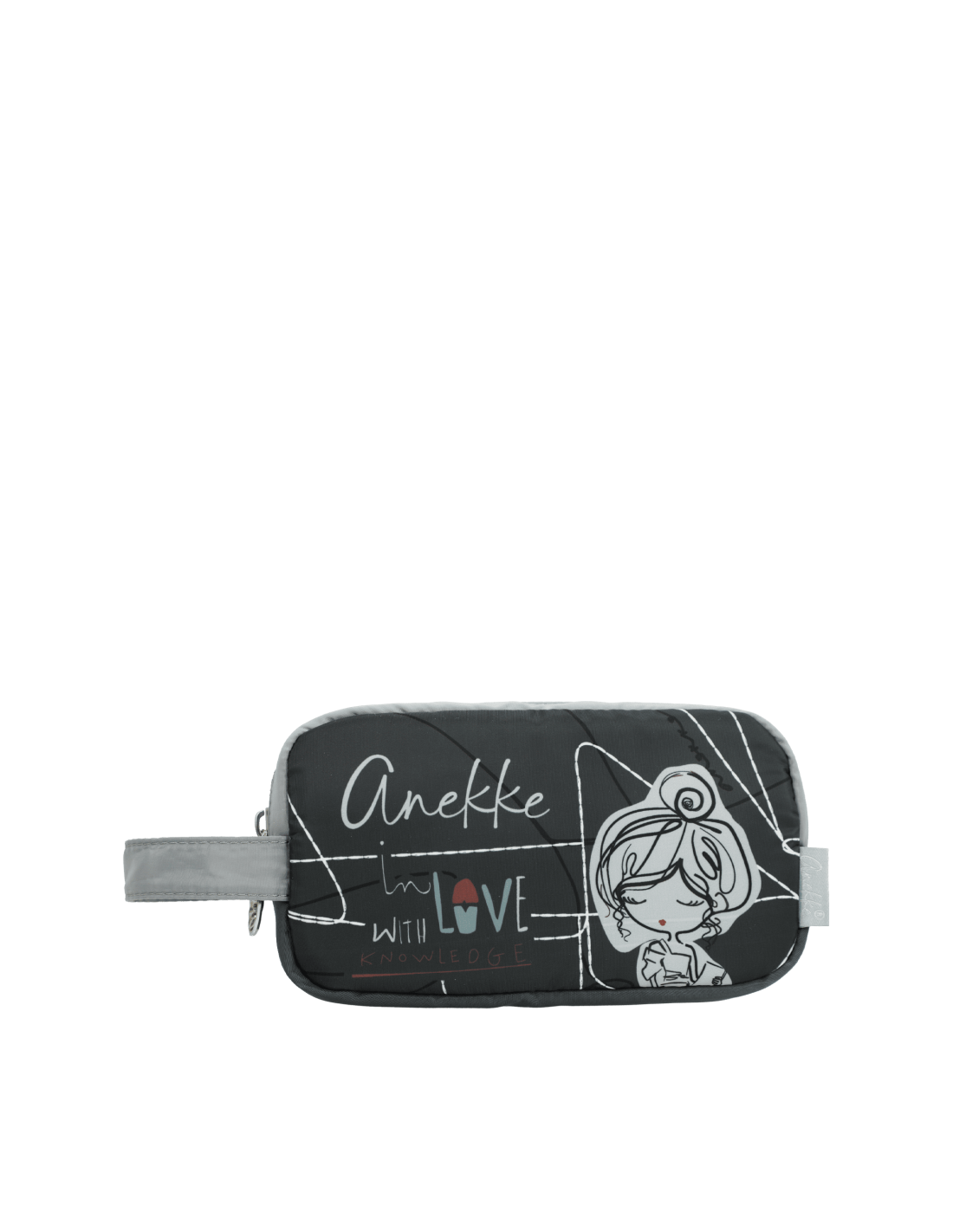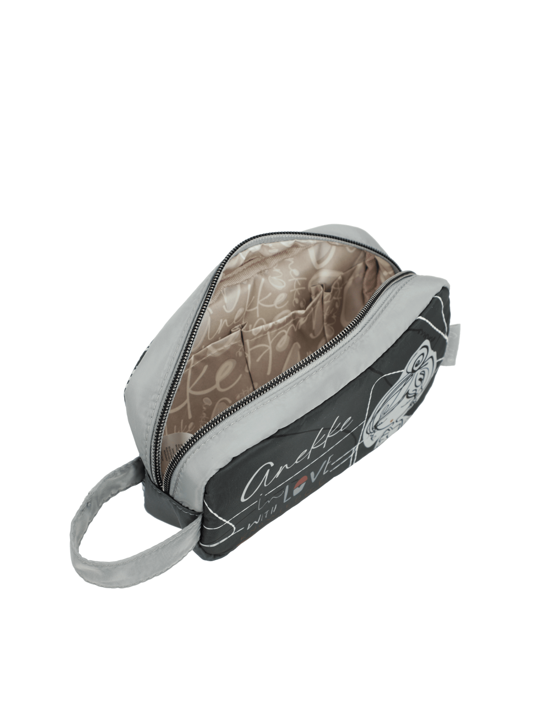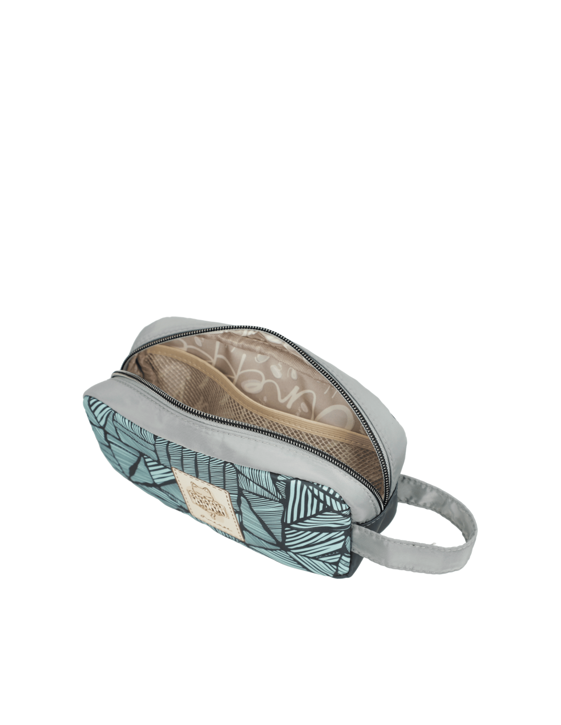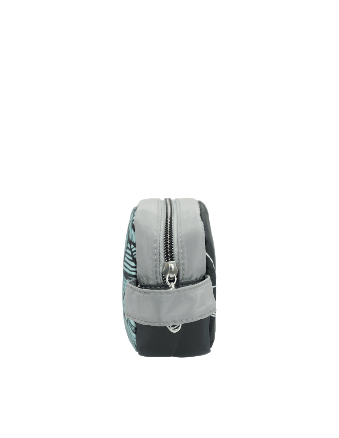 Su bolsillo principal con cierre de cremallera y su interior forrado y con compartimentos en los laterales . Con asa de mano en un lateral.