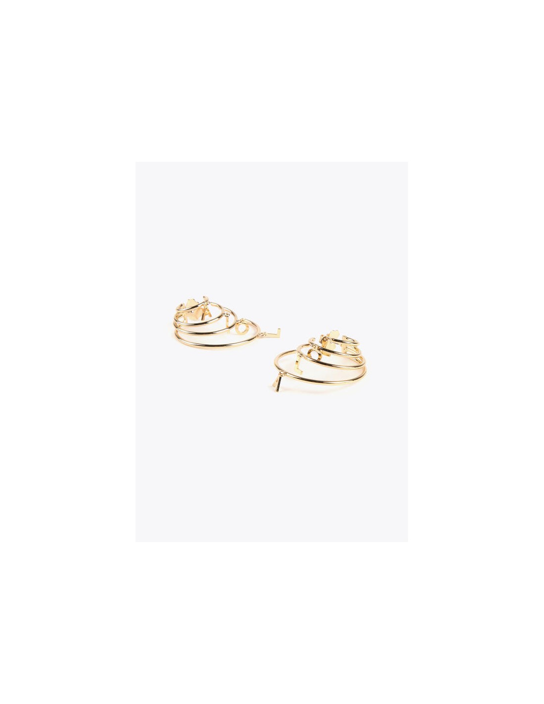 Originales pendientes  diseñado en multi aro de medidas escaladas en los que cuelga en cada uno de ellos una letra de la palabra LOLA. Con cierre a presión de la nueva colección LOLA CASADEMUNT.