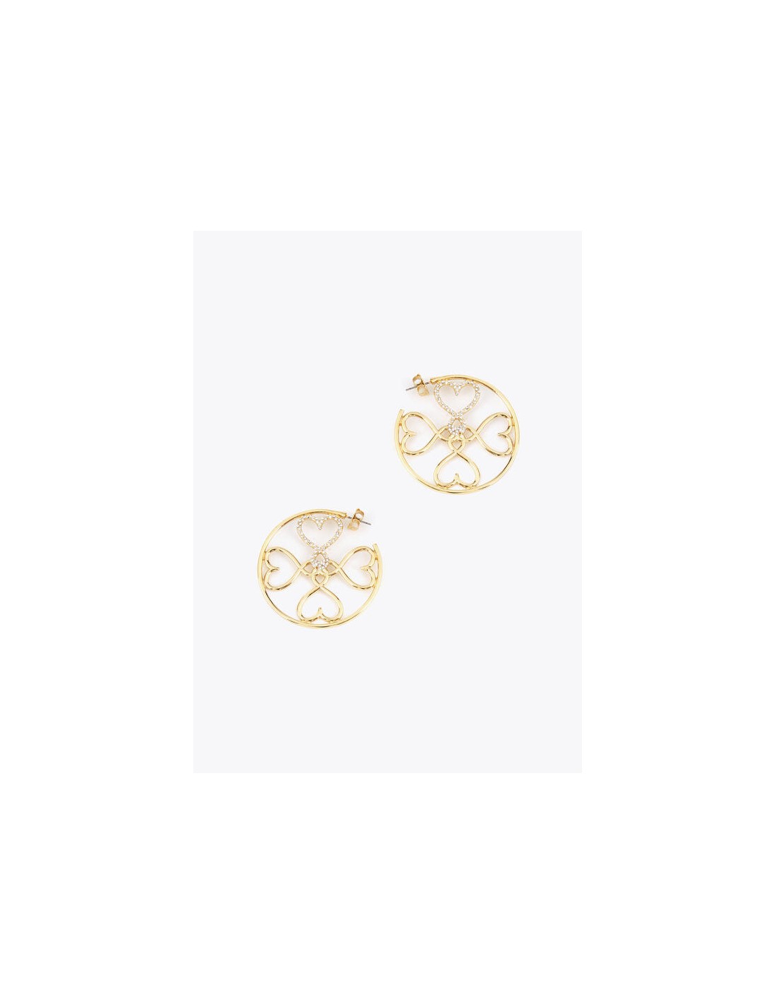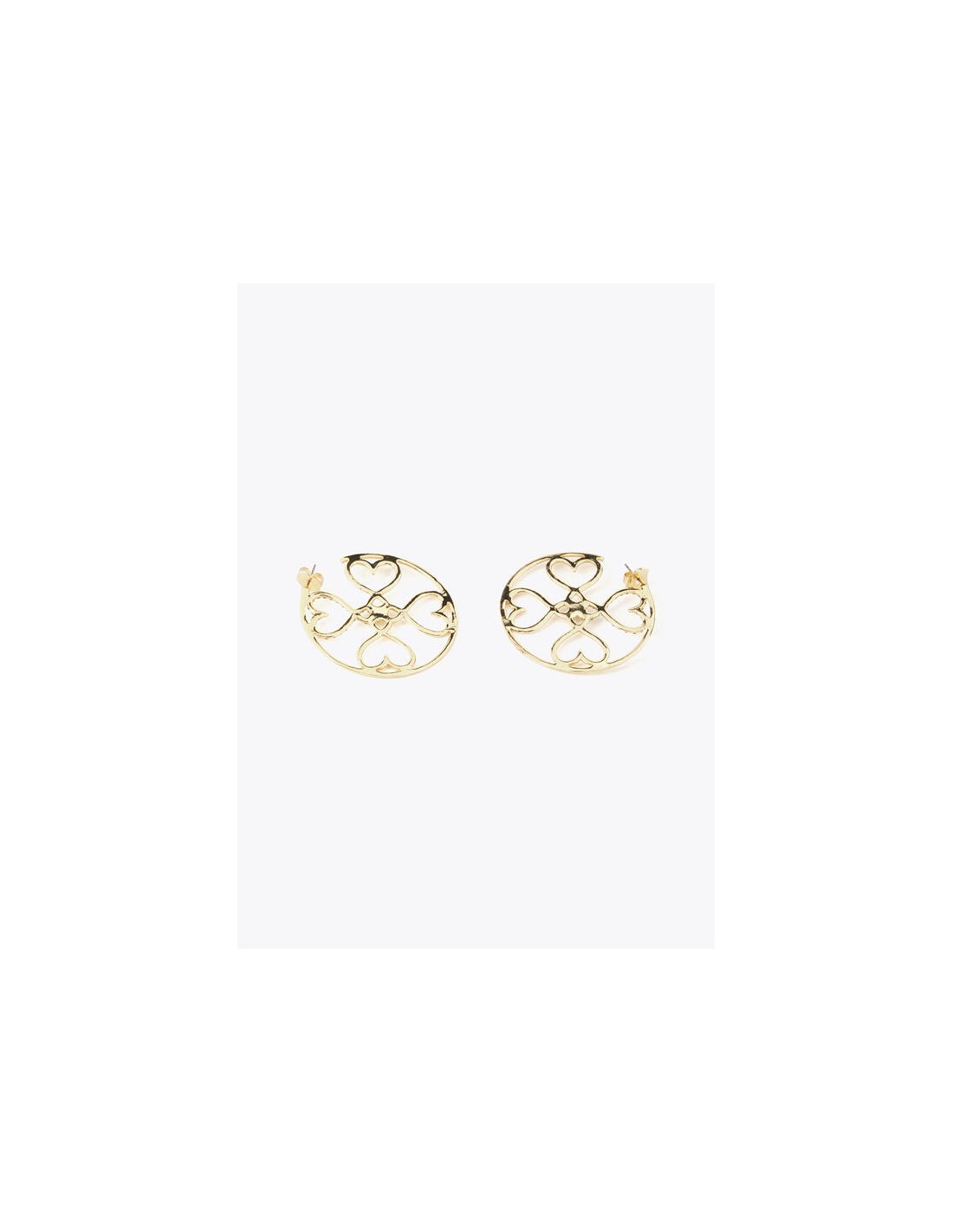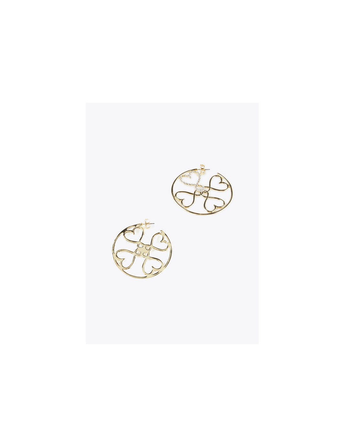 Preciosos pendientes dorados en formaro aro , con corazones infinitos en su interior,  formando  un original trébol. Su cierre a presión, De la nueva colección de la firma LOLACASADEMUNT.