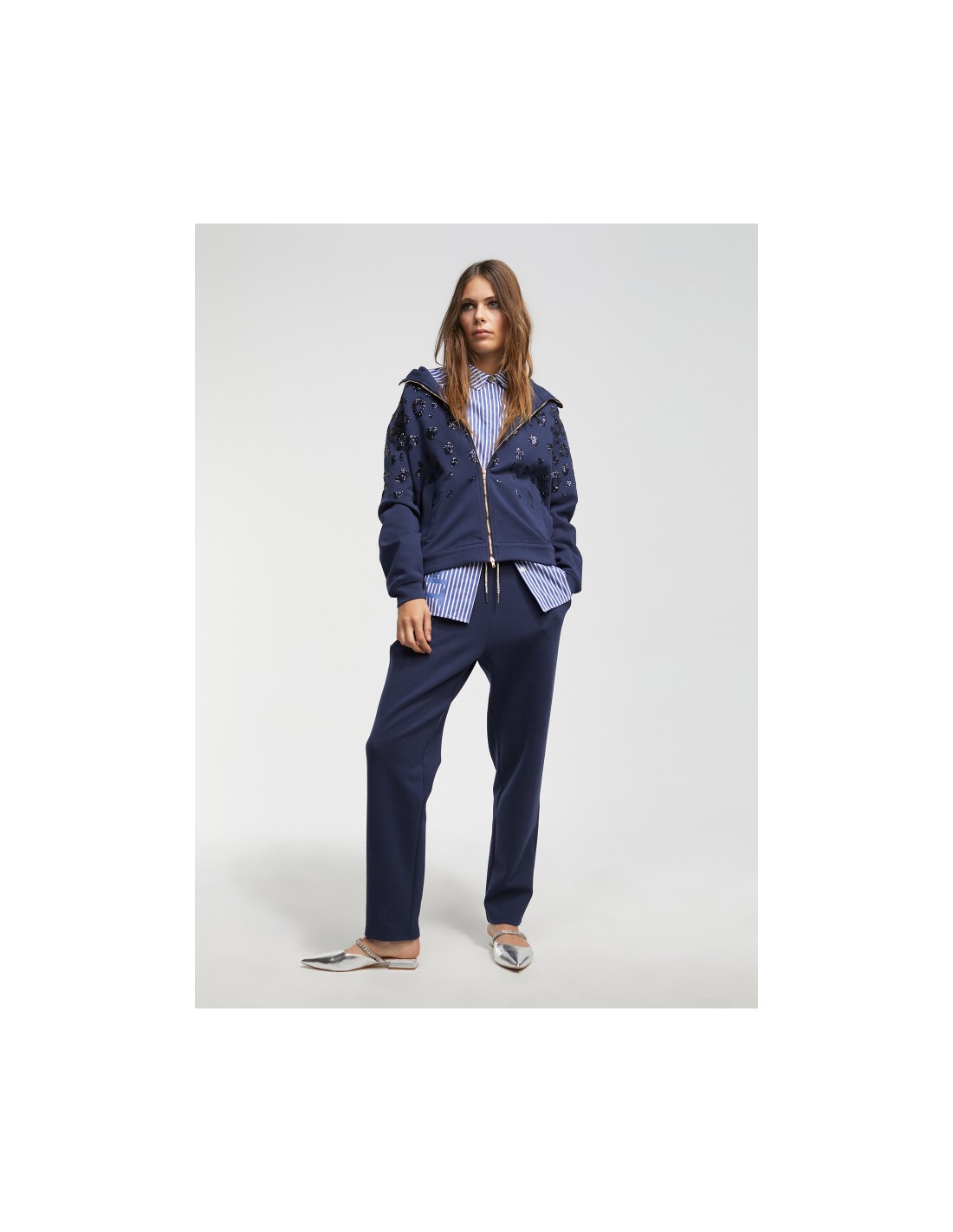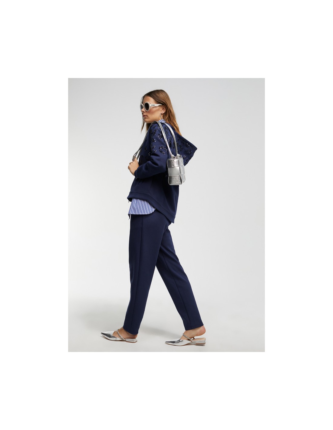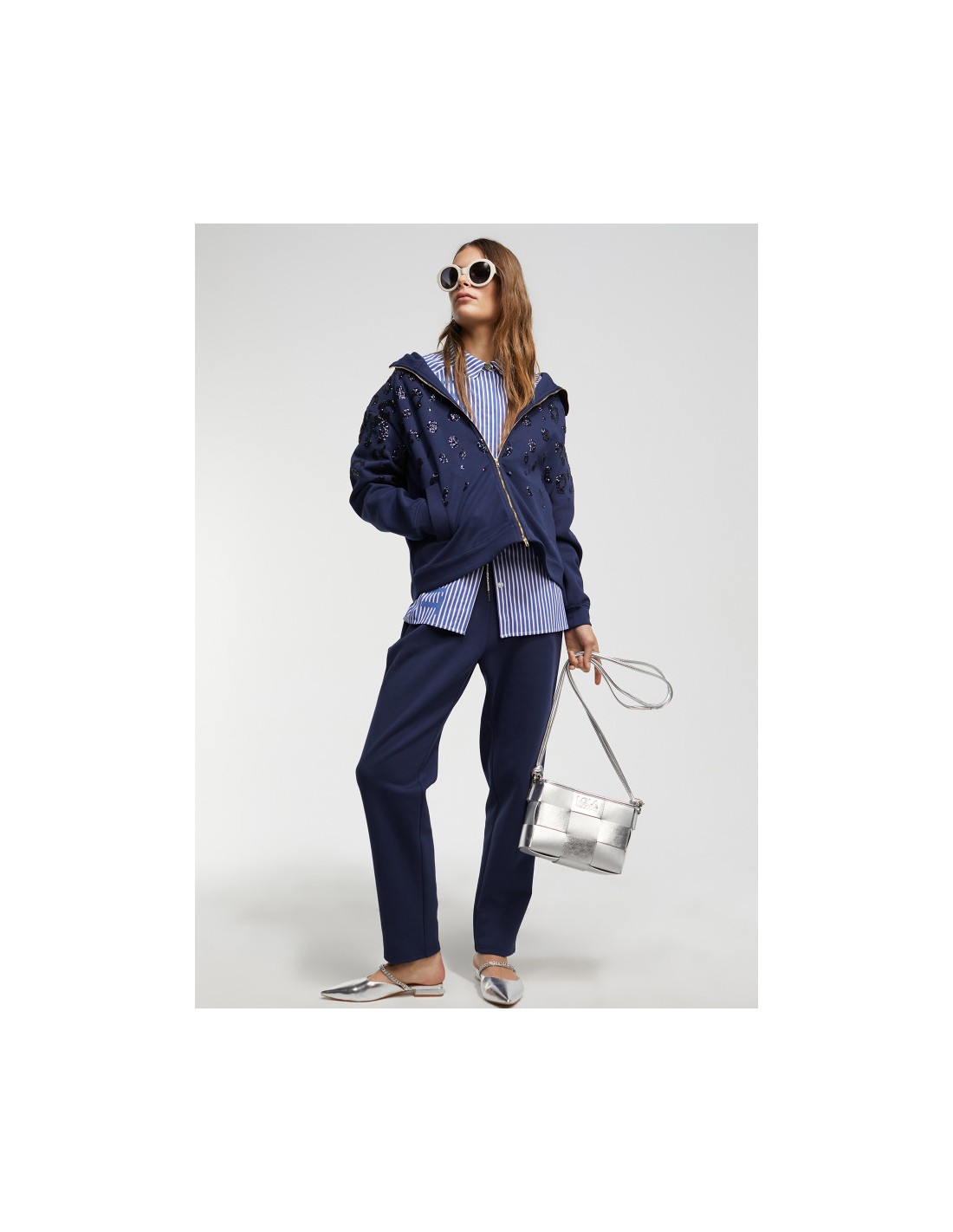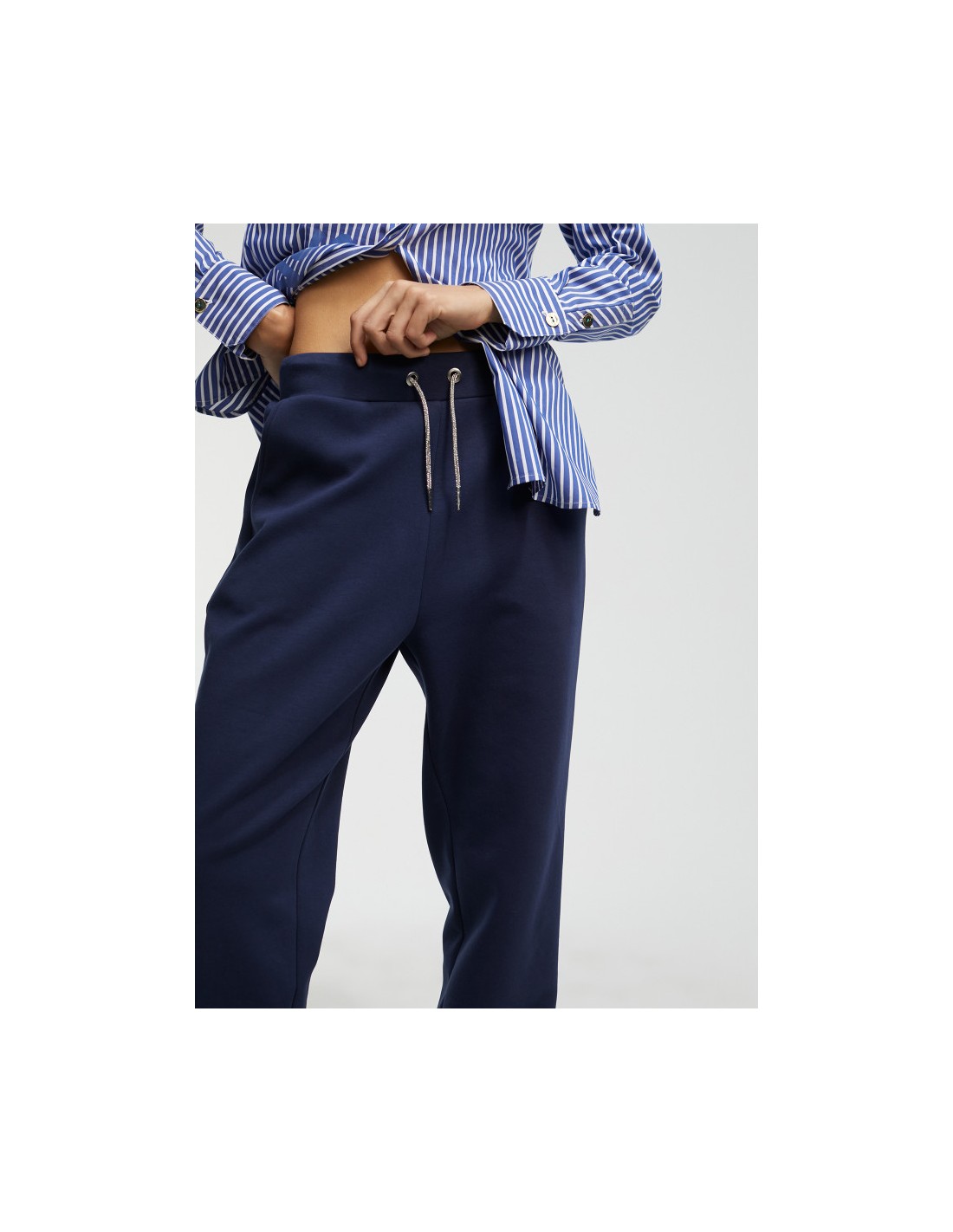 Original y llevadero jogging de corte básico en color azul, cintura ajustable mediante cordón y además es elástica de la nueva colección de la firma LOLA CASADEMUNT.