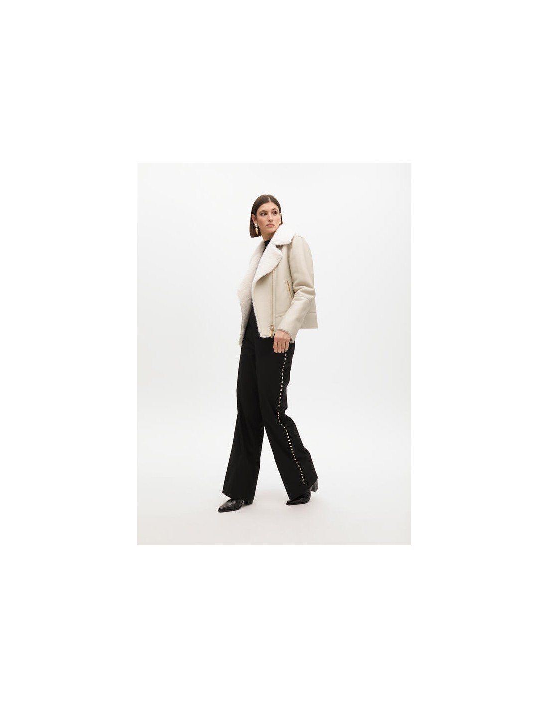 Ideal chaqueta en formato biker  color crudo de la nueva colección de la firma LOLA CASADEMUNT.