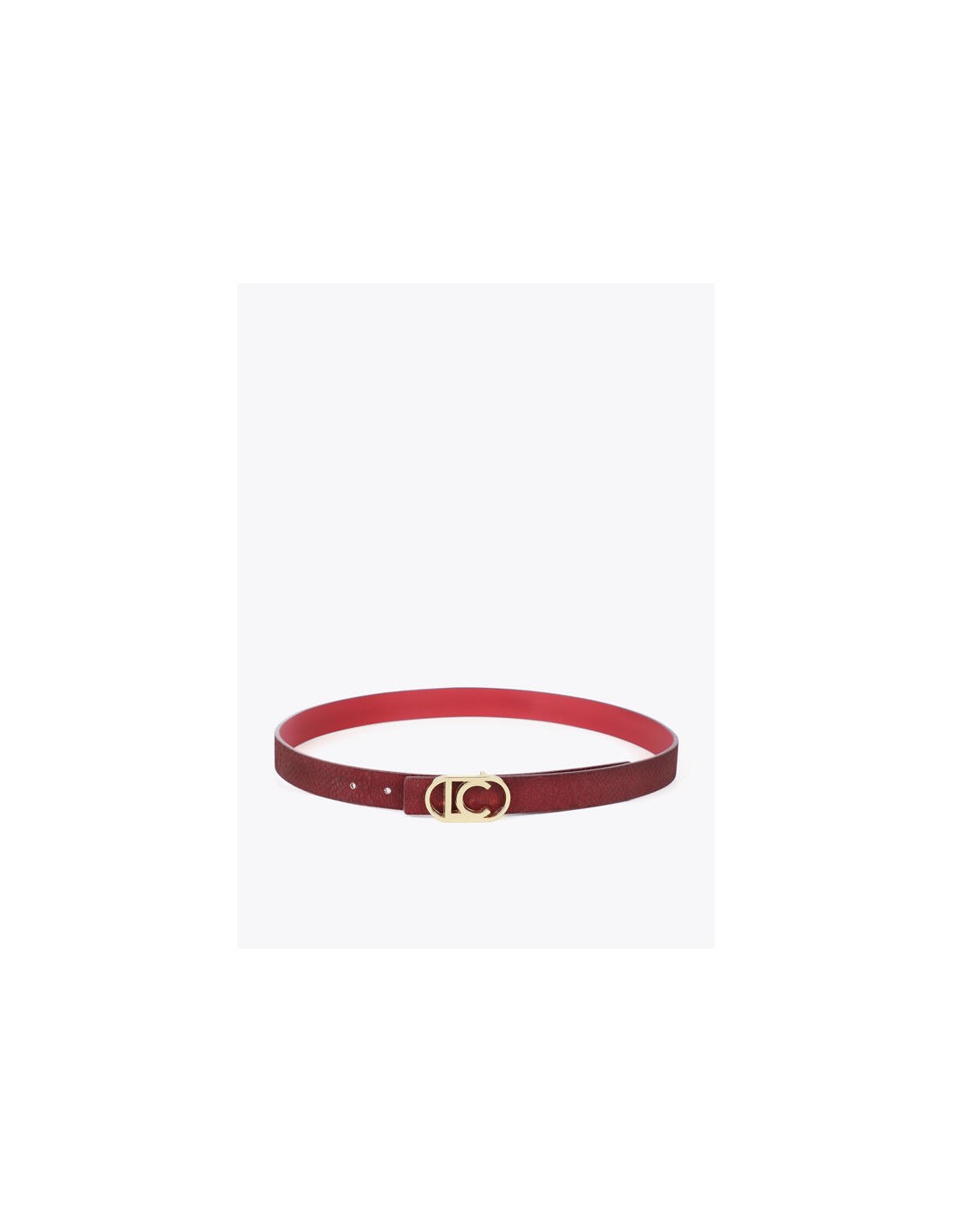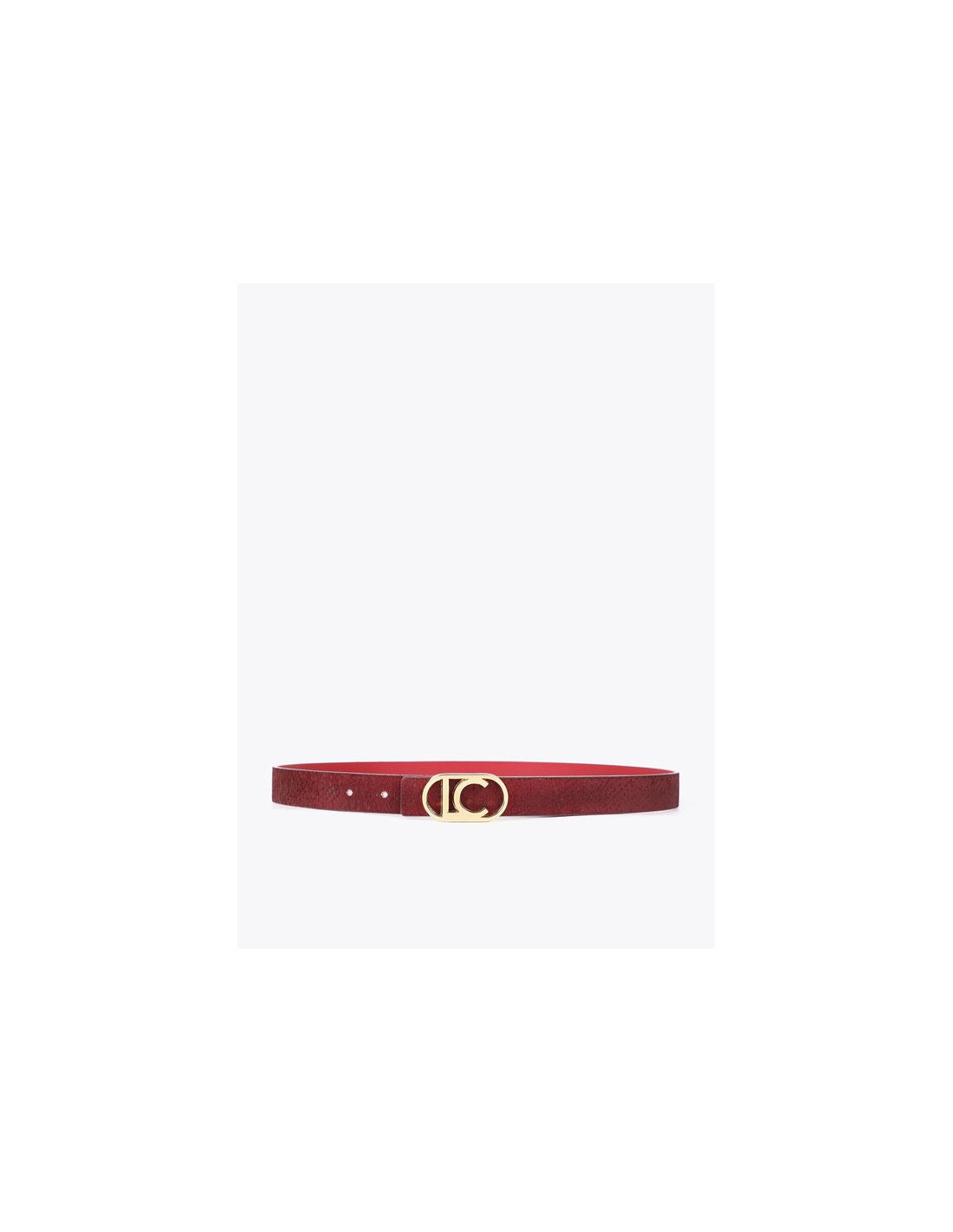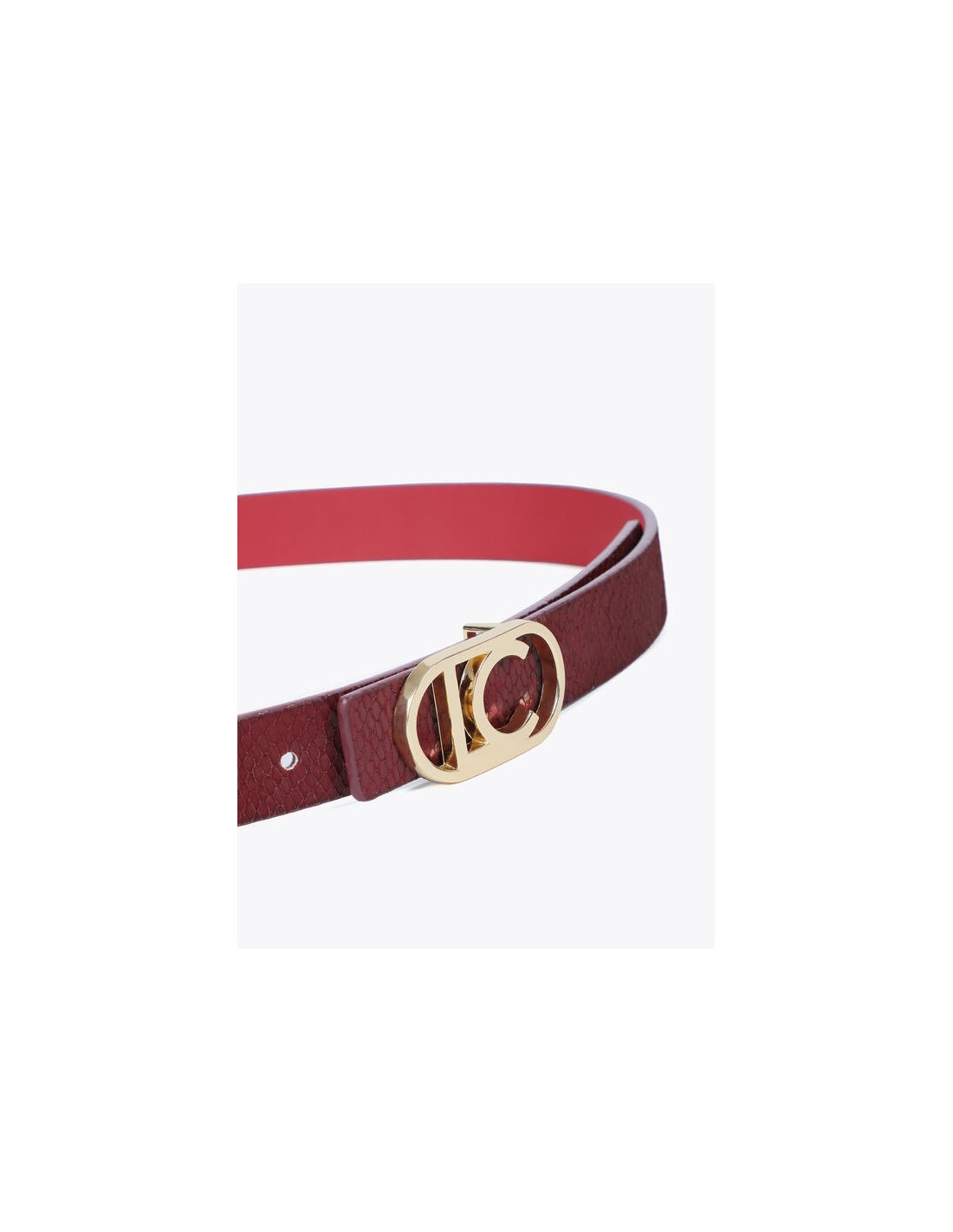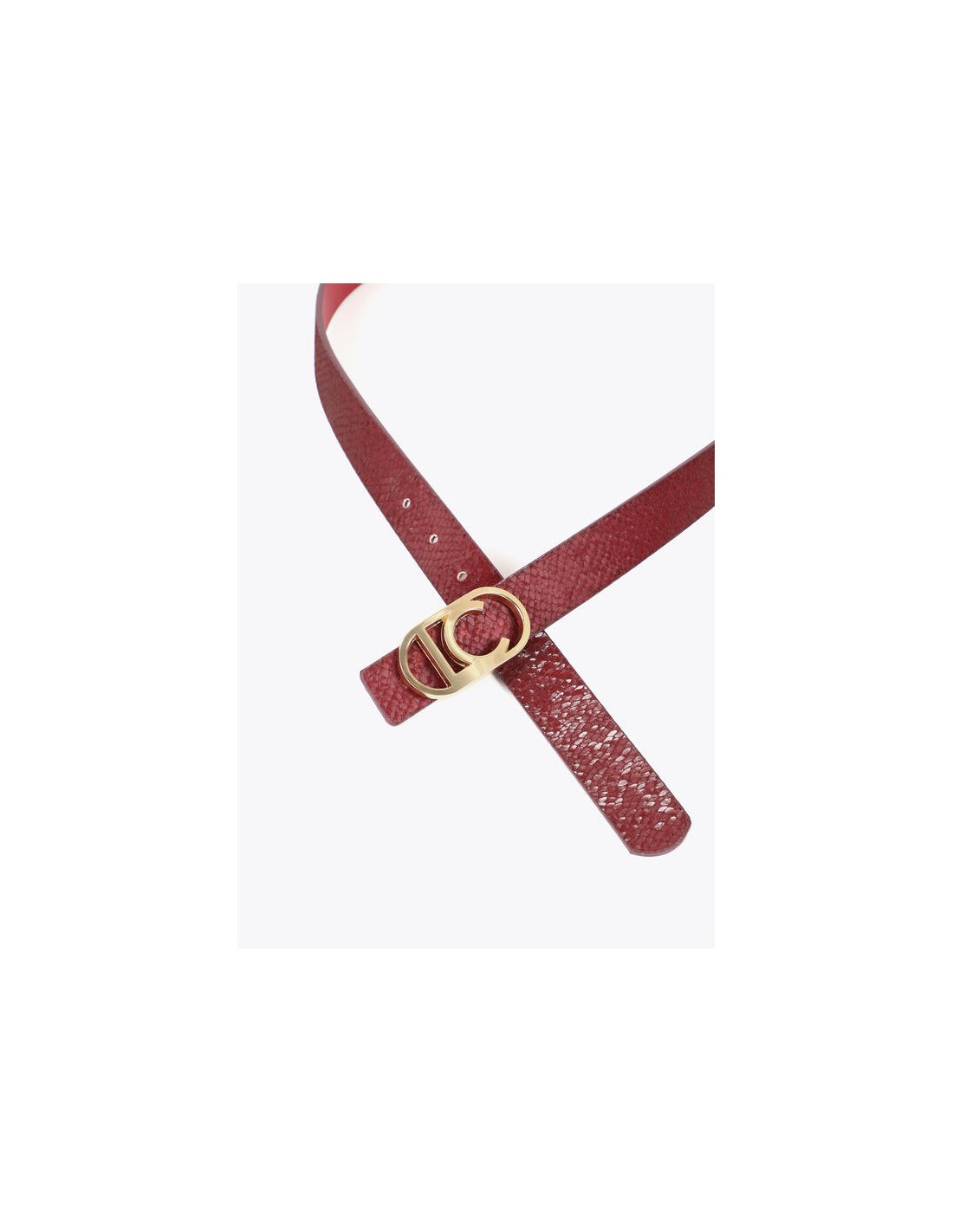 CINTURÓN-REVERSIBLE-EFECTO-SERPIENTE-BURDEOS-EFECTO-PIEL-ROJO-HEVILLA-LOGO-DORADO-OVALADO.-LOLA-CASADEMUNT