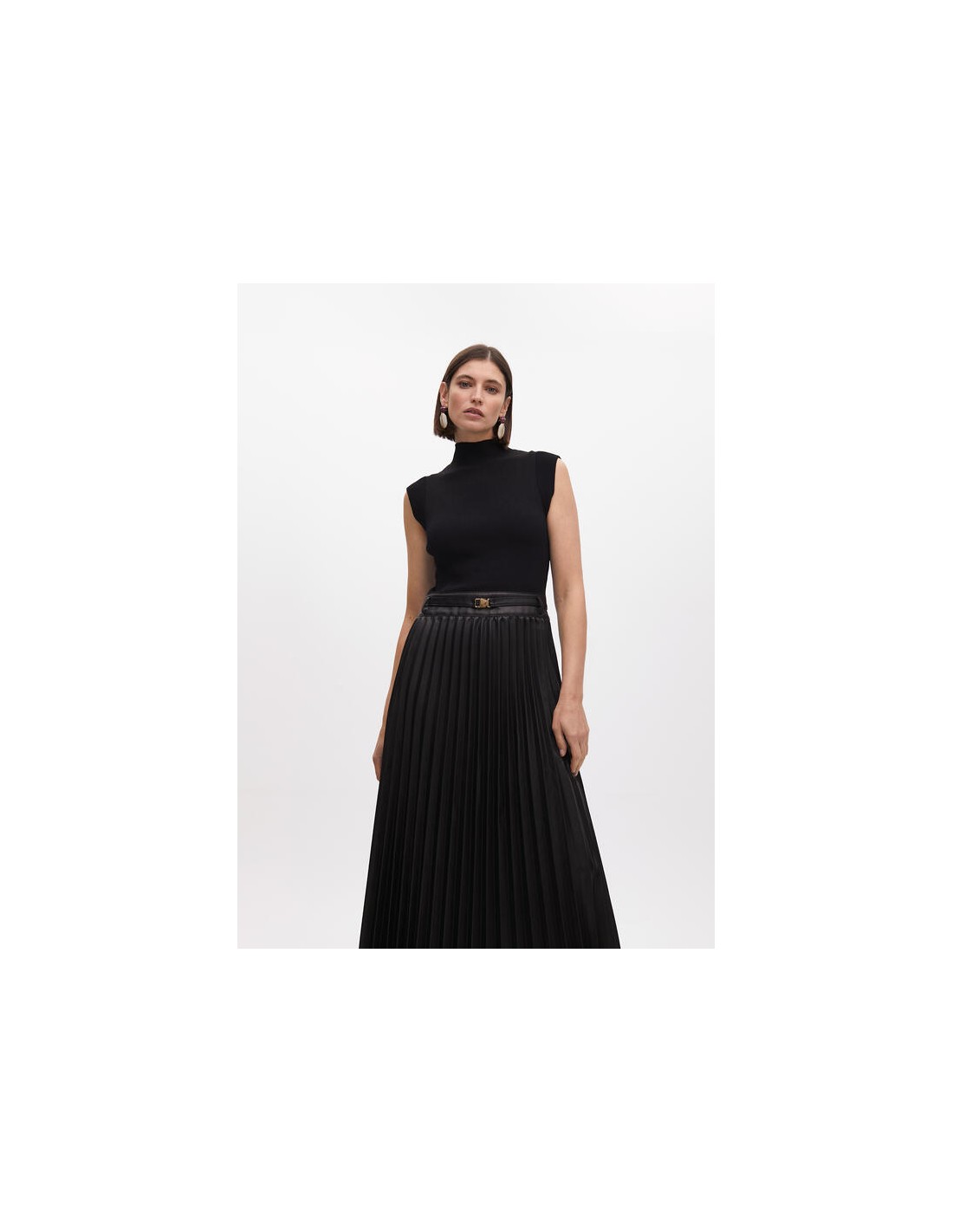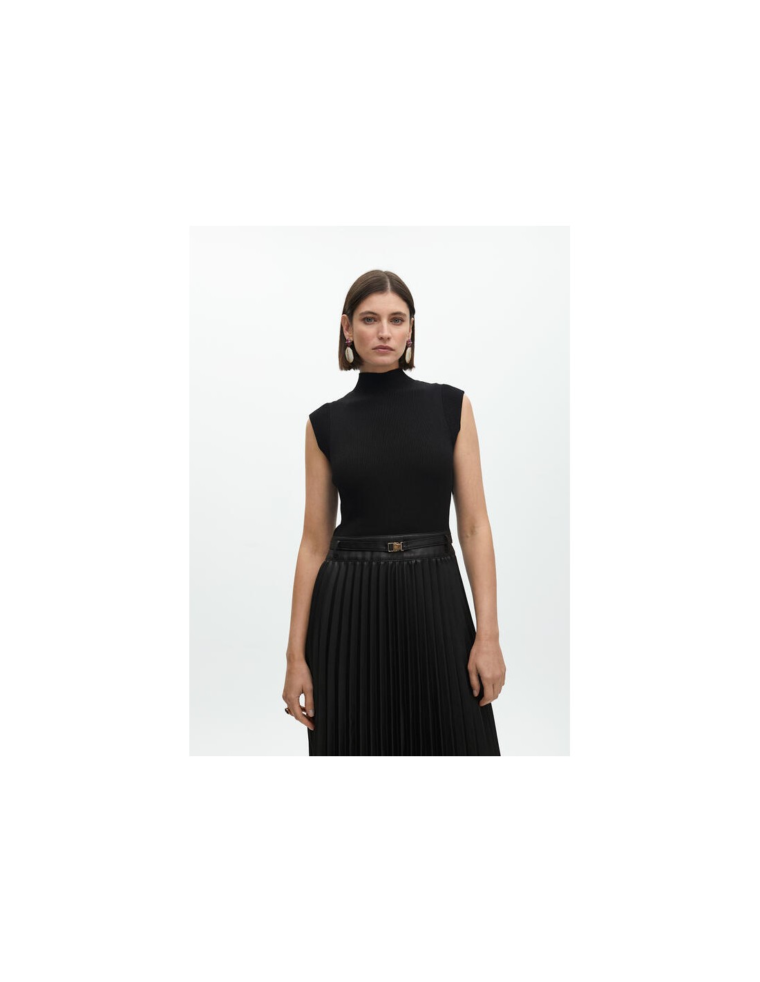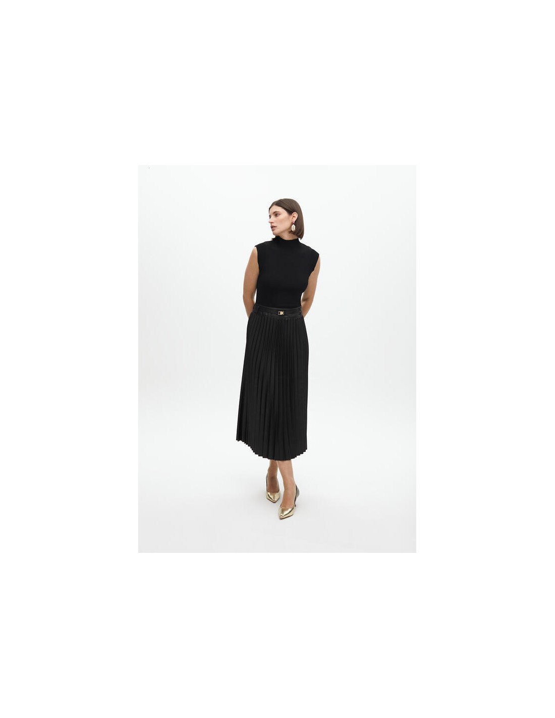 VESTIDO-MIDI.NEGRO-SIN-MANGAS-PLISADO-EFECTO-PIEL-CINTURÓN-LOLA-CASADEMUNT
