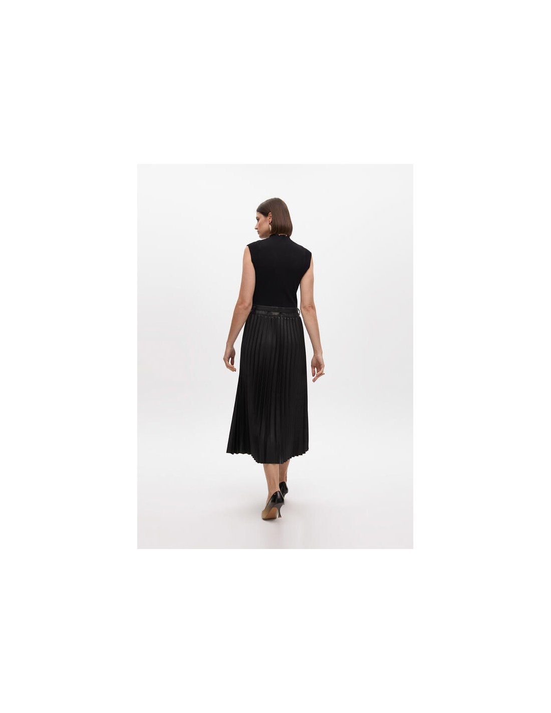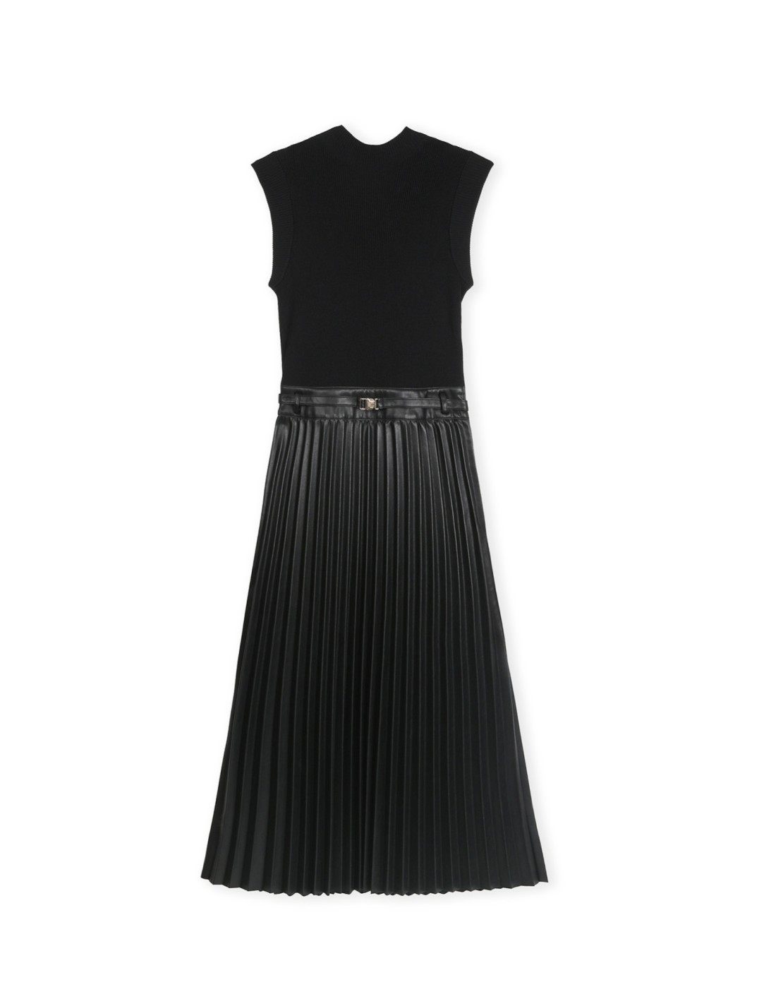 Combinado en punto la parte superior, sin mangas  y falda plisada en efecto piel.