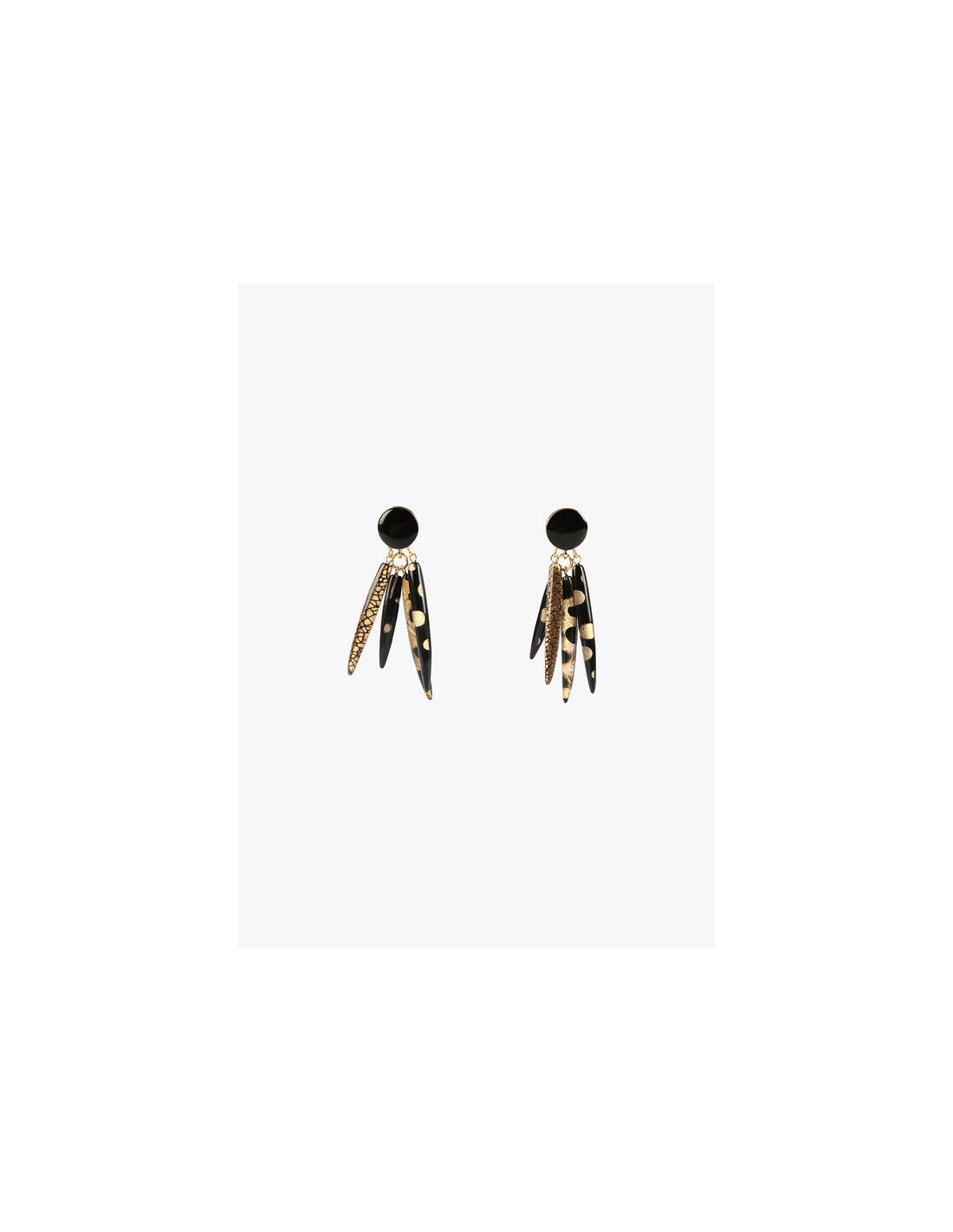 Con aplique dorado en la parte del cierre que es a presión. Unos pendientes con un diseño diferente, muy combinables, llevaderos y ligeros.