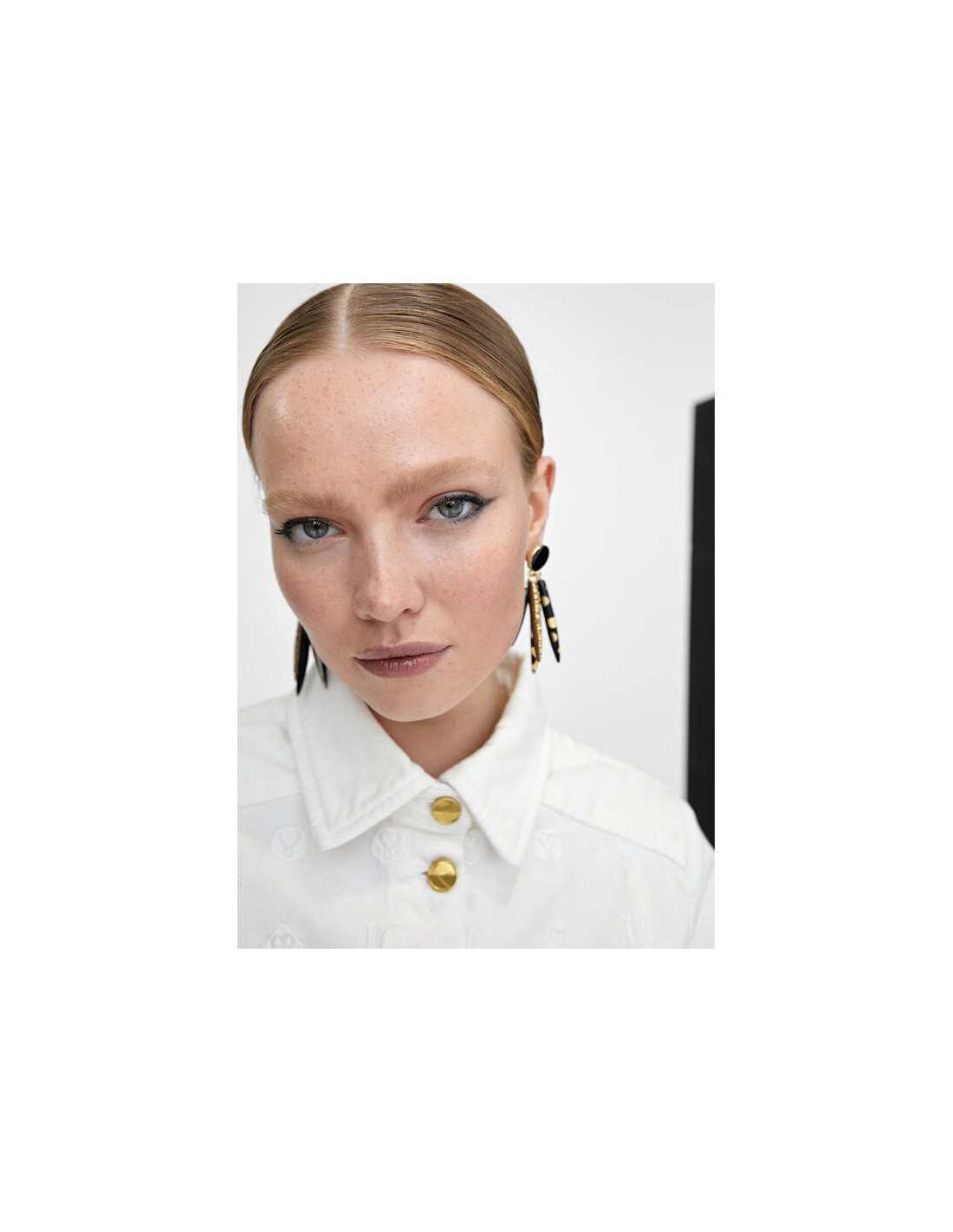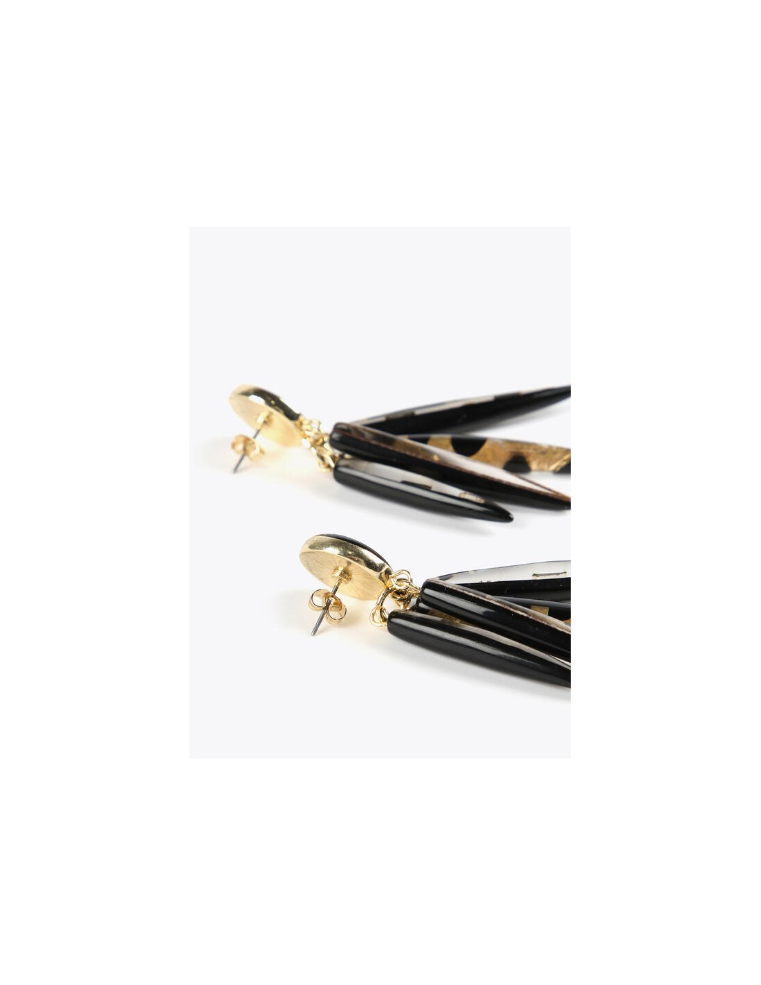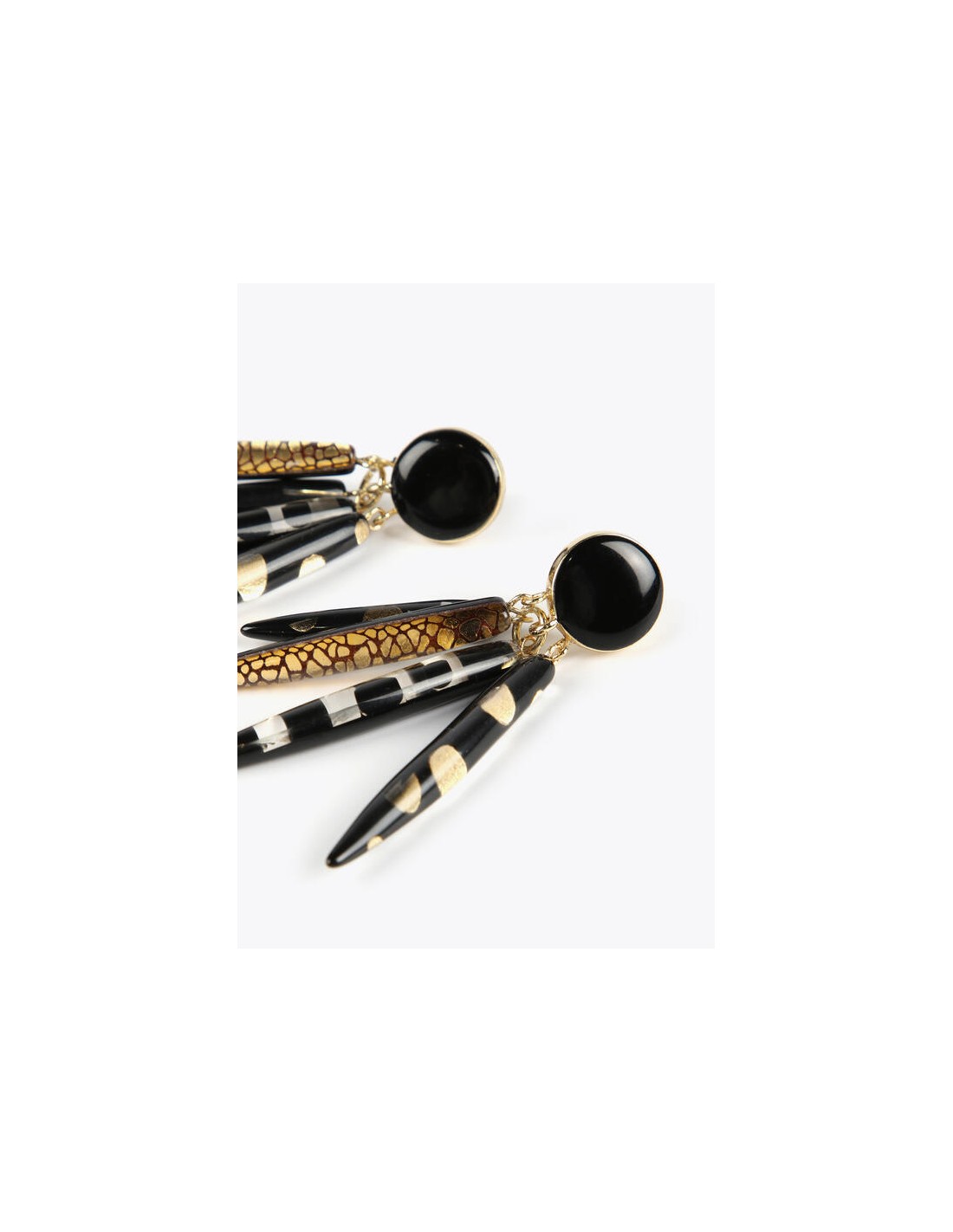 Precioso y originales pendientes estilo africano con tiras en forma de lágrima con diferentes motivos y colores de la nueva colección de la firma LOLA CASADEMUNT.