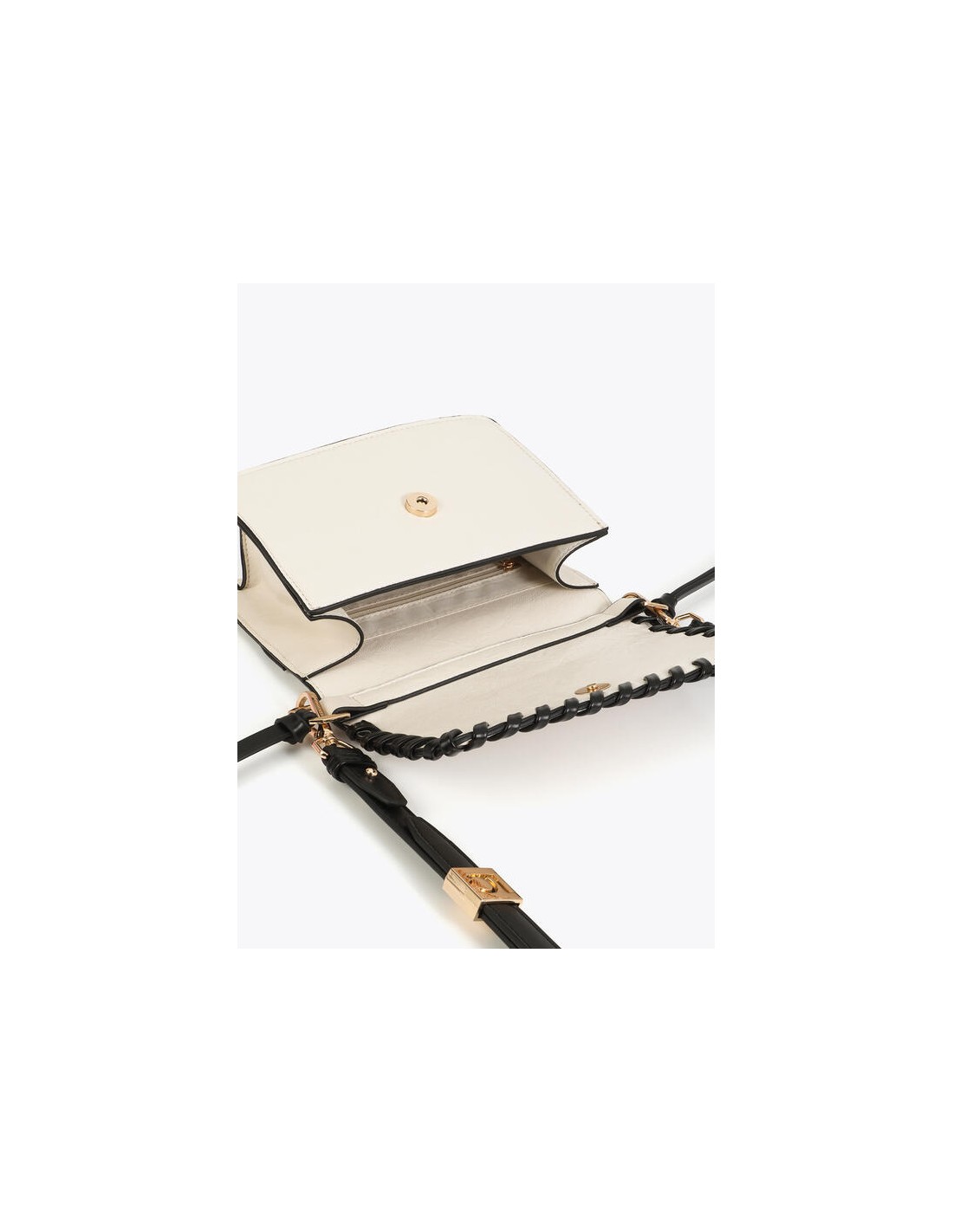 Diseñado con piel sintética suave con detalles trenzados a contraste y asas también. Detalles en dorado.
