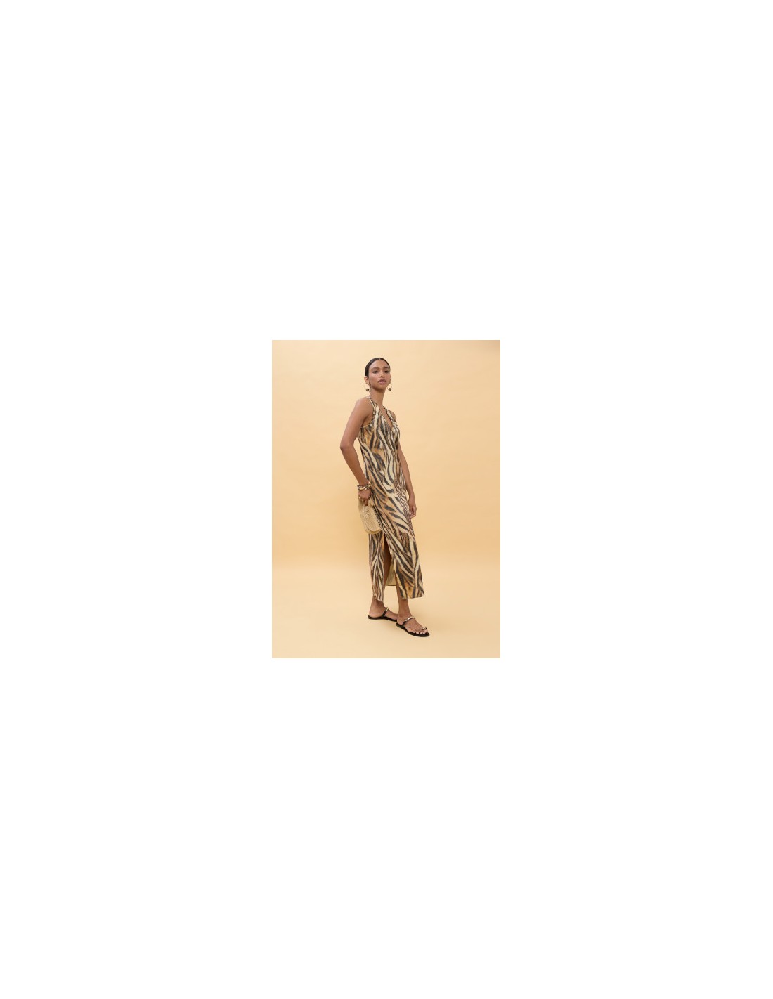 VESTIDO-LARGO-ESTAMPADO-CEBRA-MARRÓN-NEGRO-SIN-MANGAS-LOLA-CASADEMUNT
