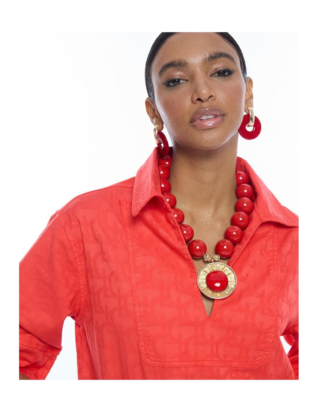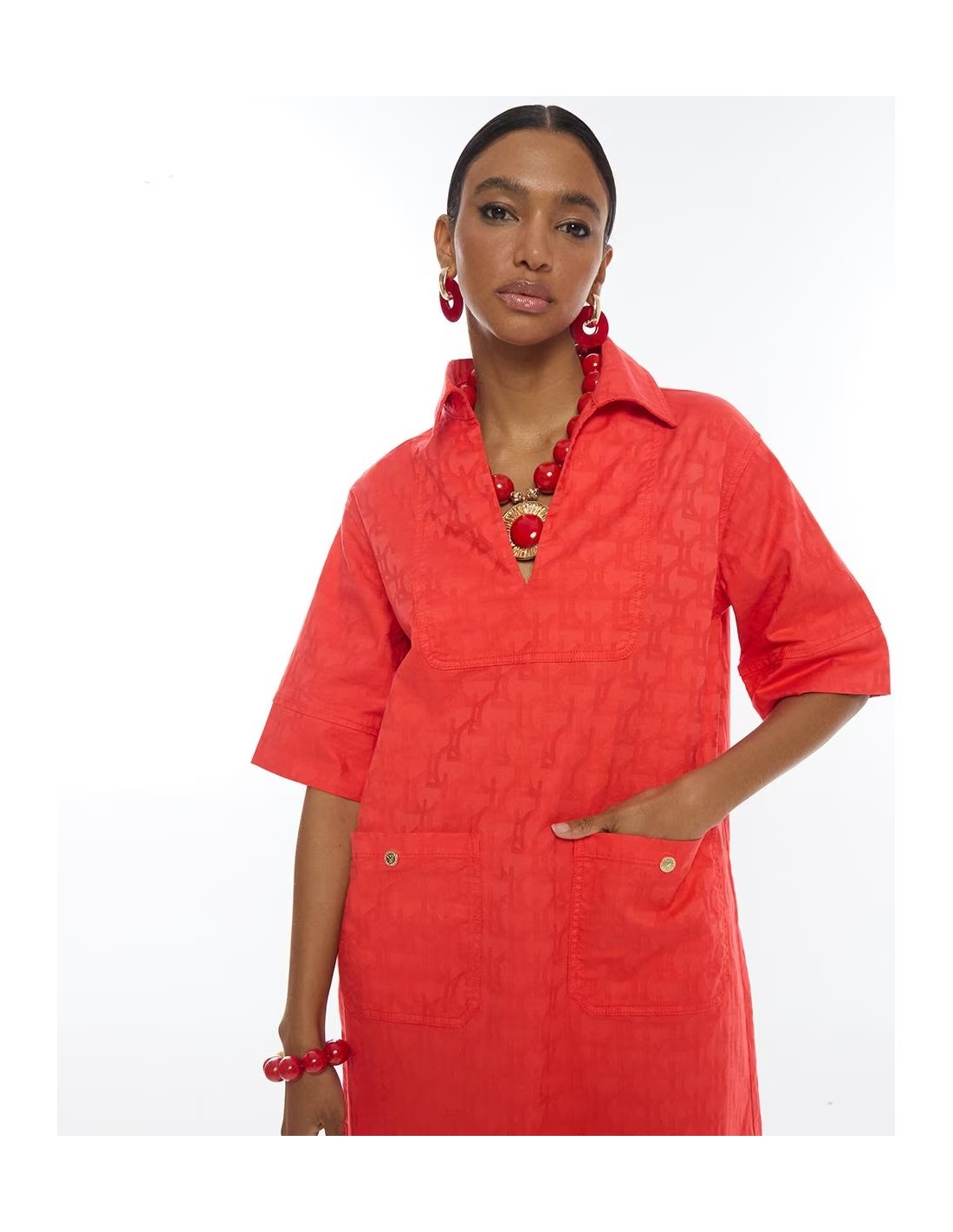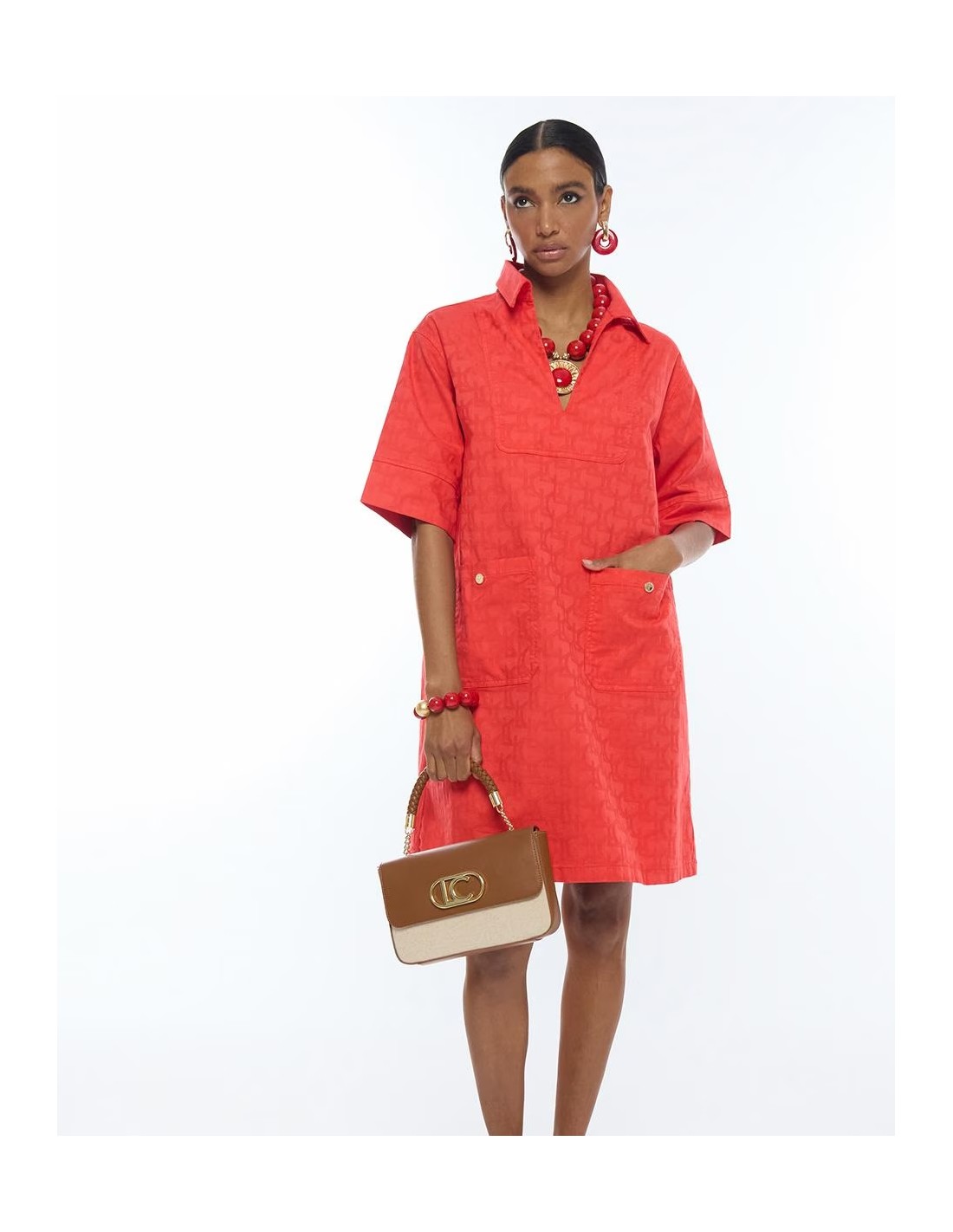 VESTIDO-CORTO-CORAL-SARGA-LOGO-JACQUARD-BOLSILLOS-FRONTALES-LOLA-CASADEMUNT