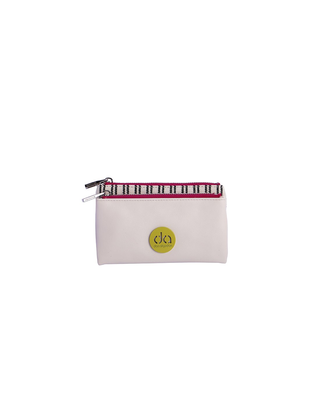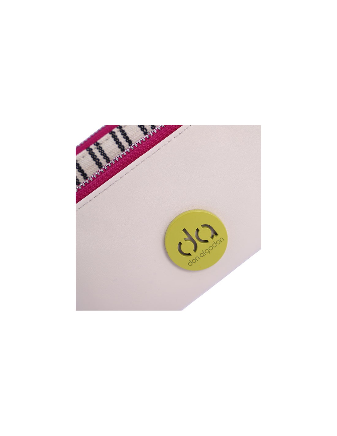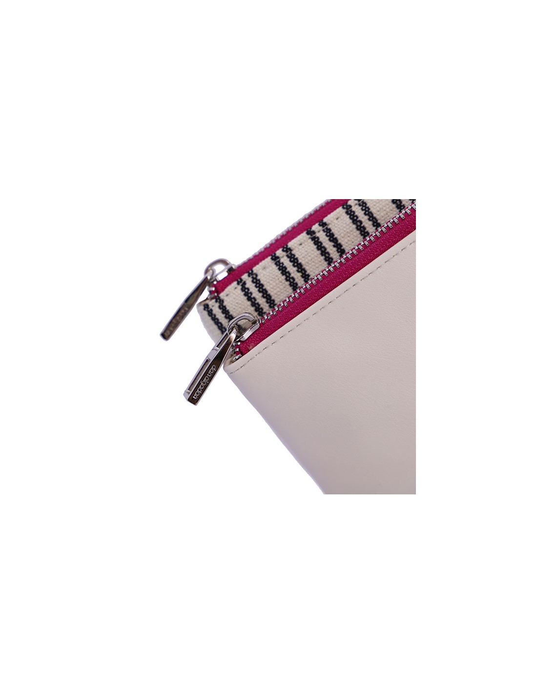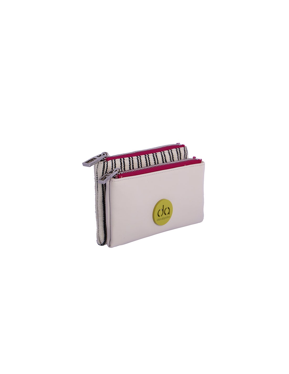 Original monedero con doble compartimento que combia piel sintética en blanco con lona con un estampado de rayas de la nueva colección YASMIN de la firma DON ALGODÓN.