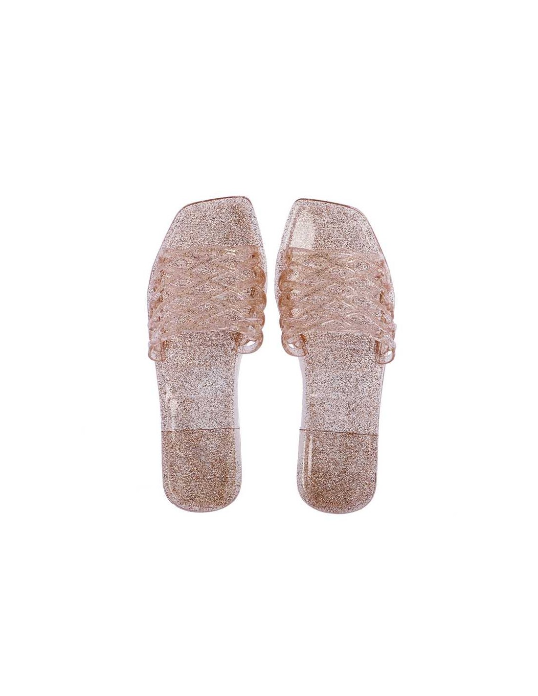 Ideales chanclas planas de agua en color dorado con detalle de brillo  y diseñadas en PVC de la colección ISABELLE de la firma DON ALGODÓN.