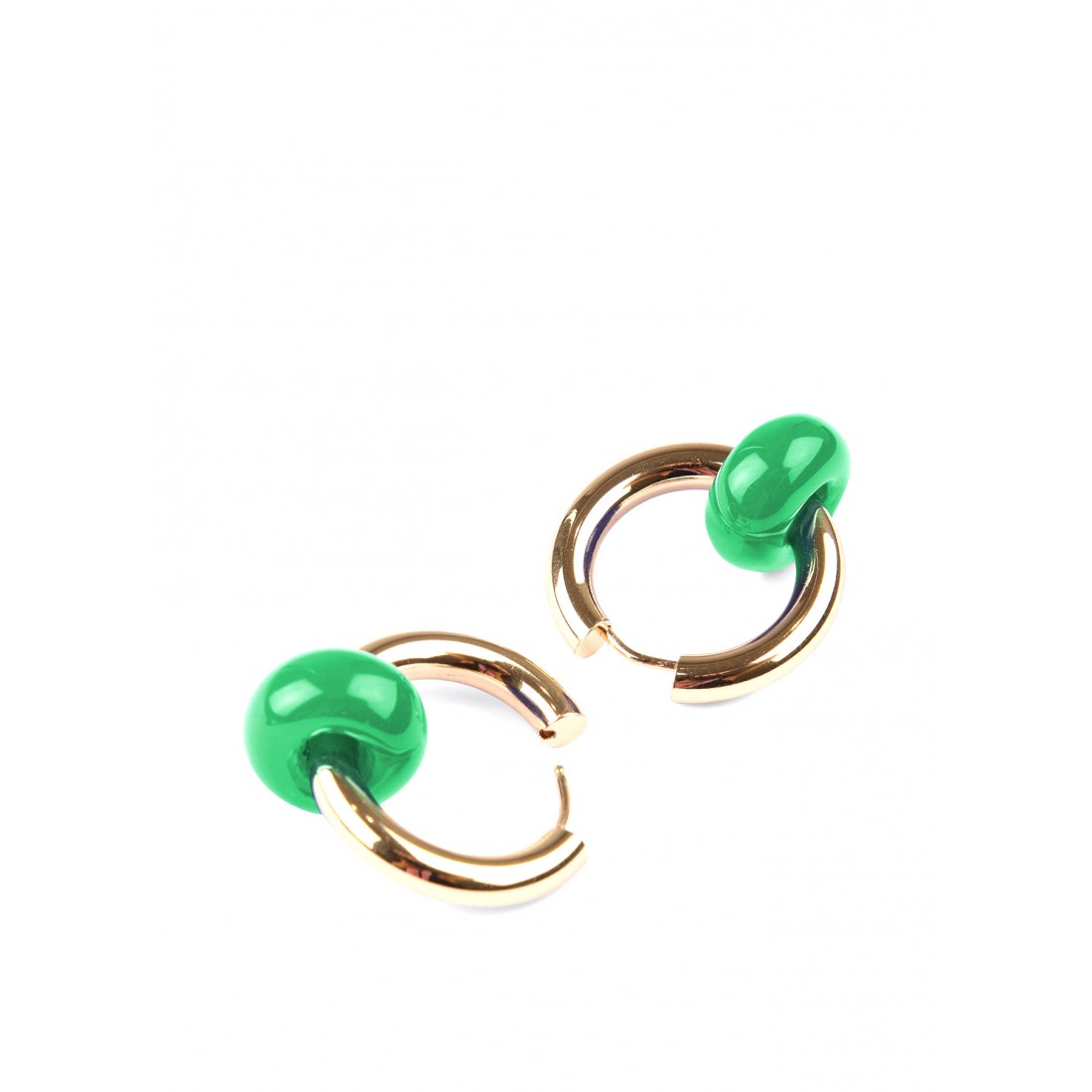 Diseñados con una argolla dorada con pieza circular de resina de color introducida en el aro. El cierre se inserta em el mismo aro.