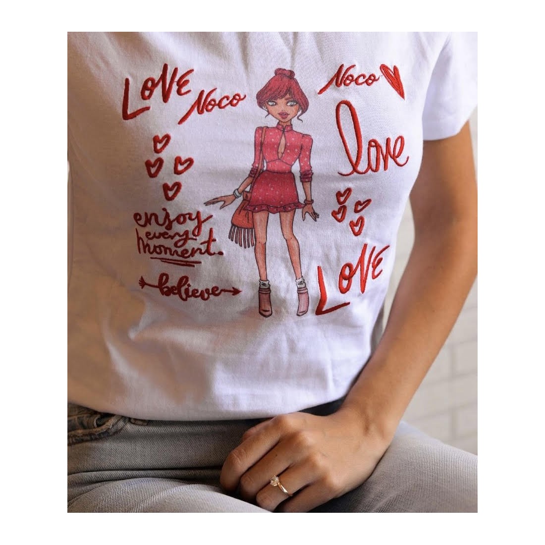 CAMISETA CHICAS DE NOCO. Original camiseta 100% algodón de la firma NOCO. Tres modelos diferentes en colores variados, rojo, negro y rojo con azul. Muy cómodas y llevaderas con cualquier, jeans, shorts o falda