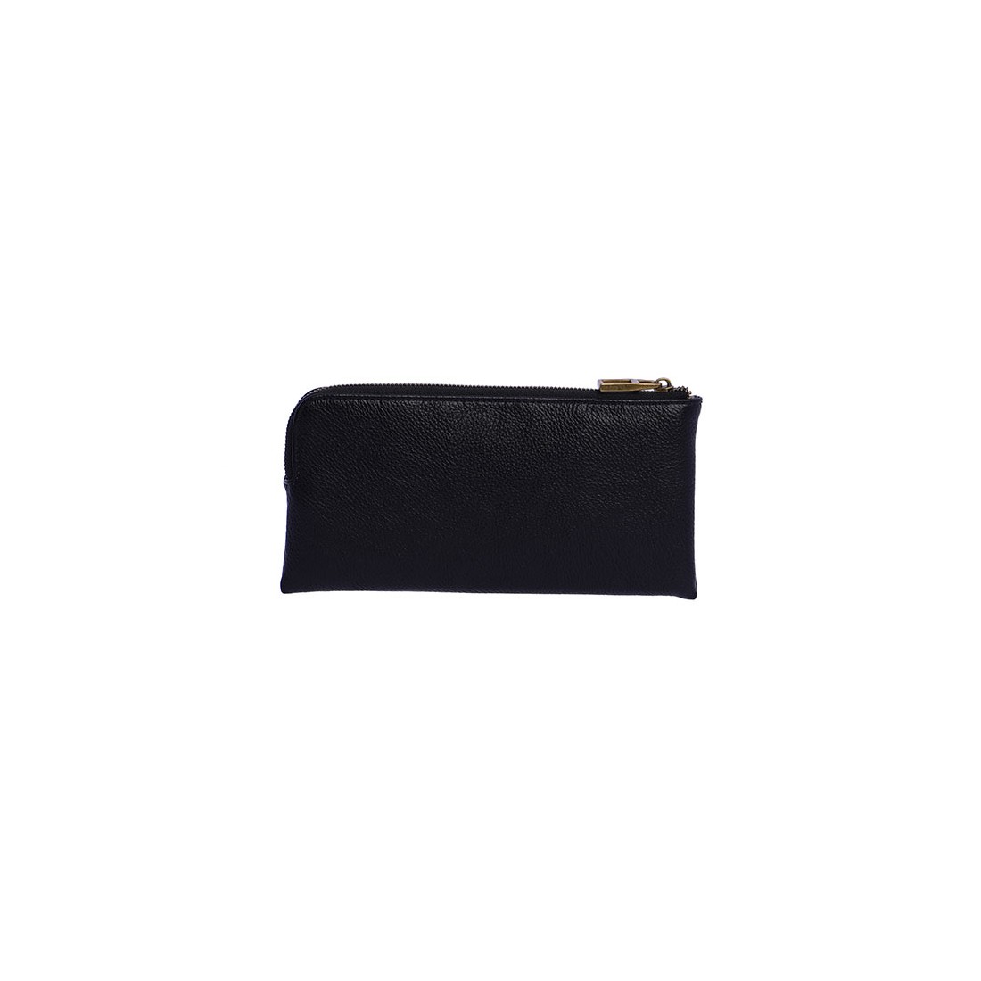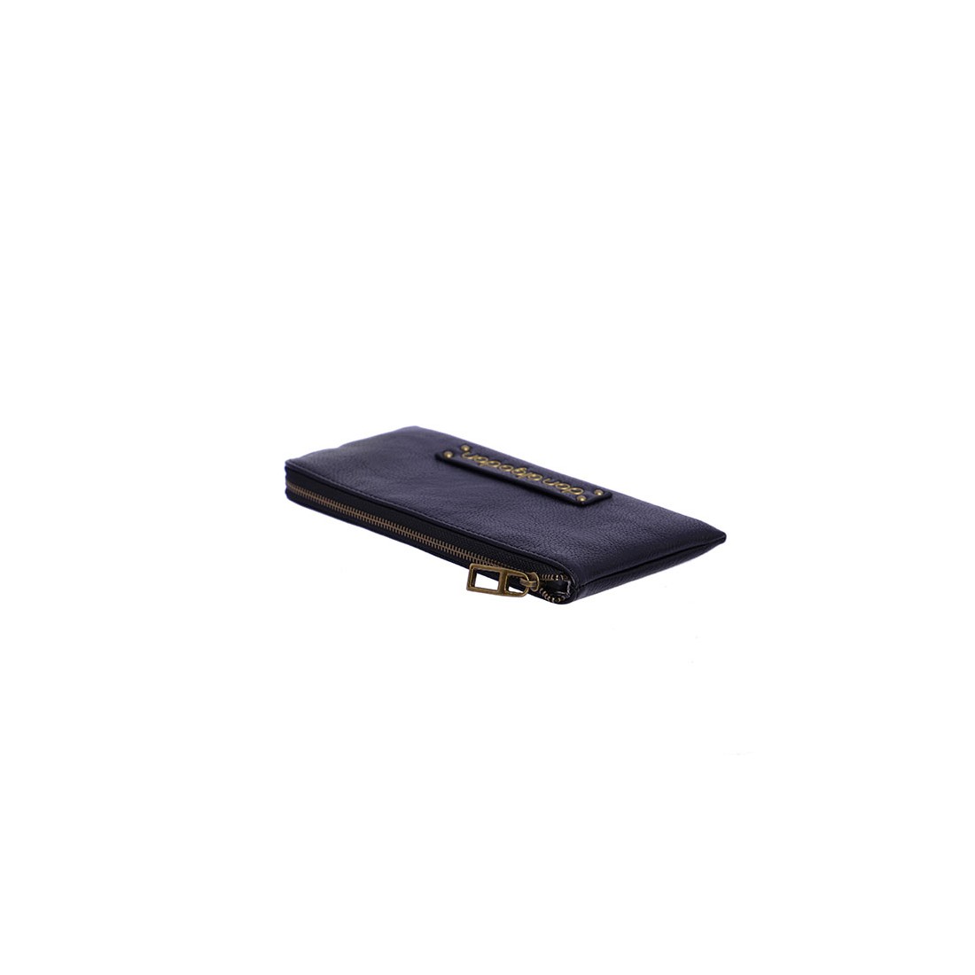 Diseñado en piel sintética de alta calidad . Con cierre de cremallera en la parte superior llegando a la mitad de un lado para su fácil apertura. Su interior se compone de dos partes sin ningún tipo de cierre. Una más amplia para dejar móvil, llaves, monedas...y la otra para billetes con 4 compartimentos para tarjetas. Un billetero completo, muy bien organizado para tenerlo todo a mano. Con logo en dorado en el inferior de la parte frontal con un parche con la misma piel y apliques metálicos también en dorado. Muy blandito y manejable.