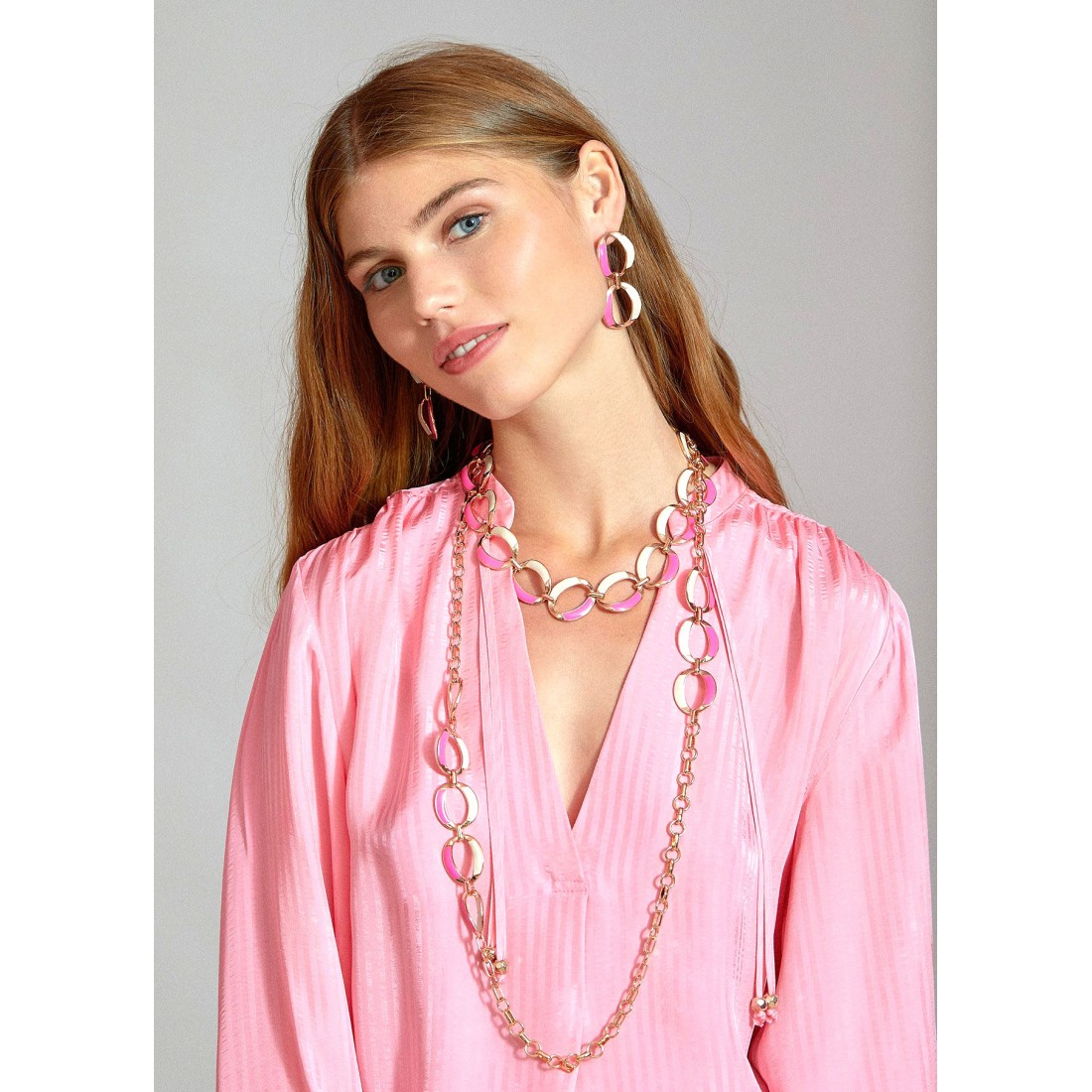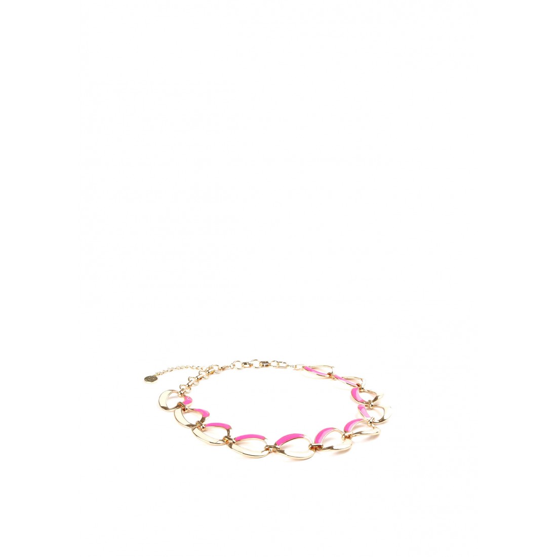 Diseñado en cadena dorada  combinando eslabones  lacados en dos coloresCon cierre de langosta y pequeña cadenita para regular a la altura que se desee.